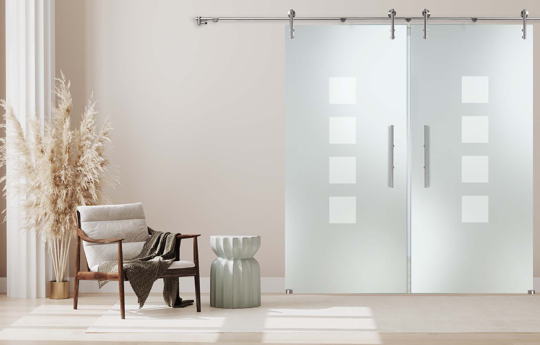 Doppelschiebetür "253-S" mit V1000-Schiebesystem und Sandstrahlung