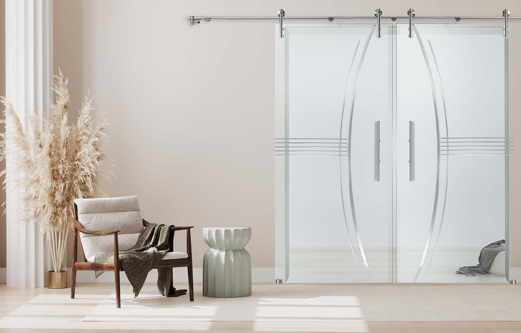Produktinformationen "Doppelschiebetür "829-F" mit V1000-Schiebesystem und Rillenschliff "