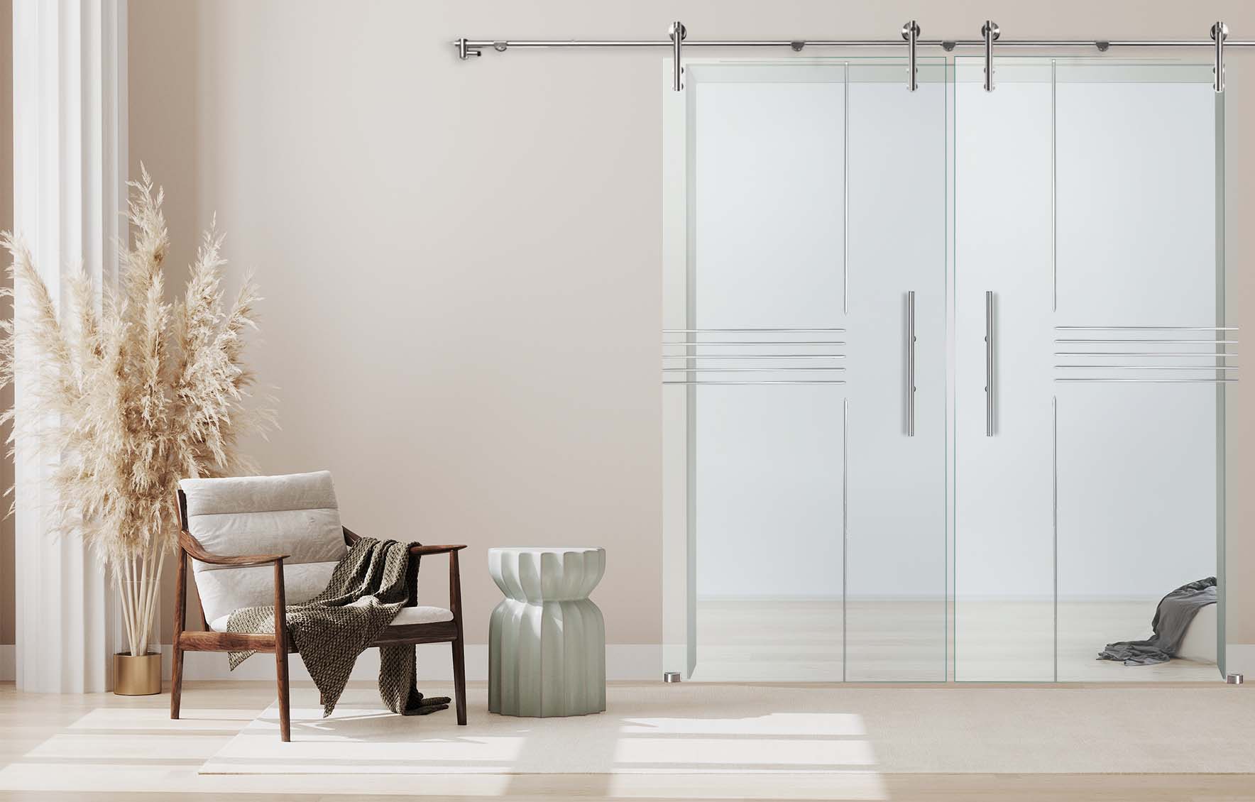 Doppelschiebetür "888-F" mit V1000-Schiebesystem und Rillenschliff