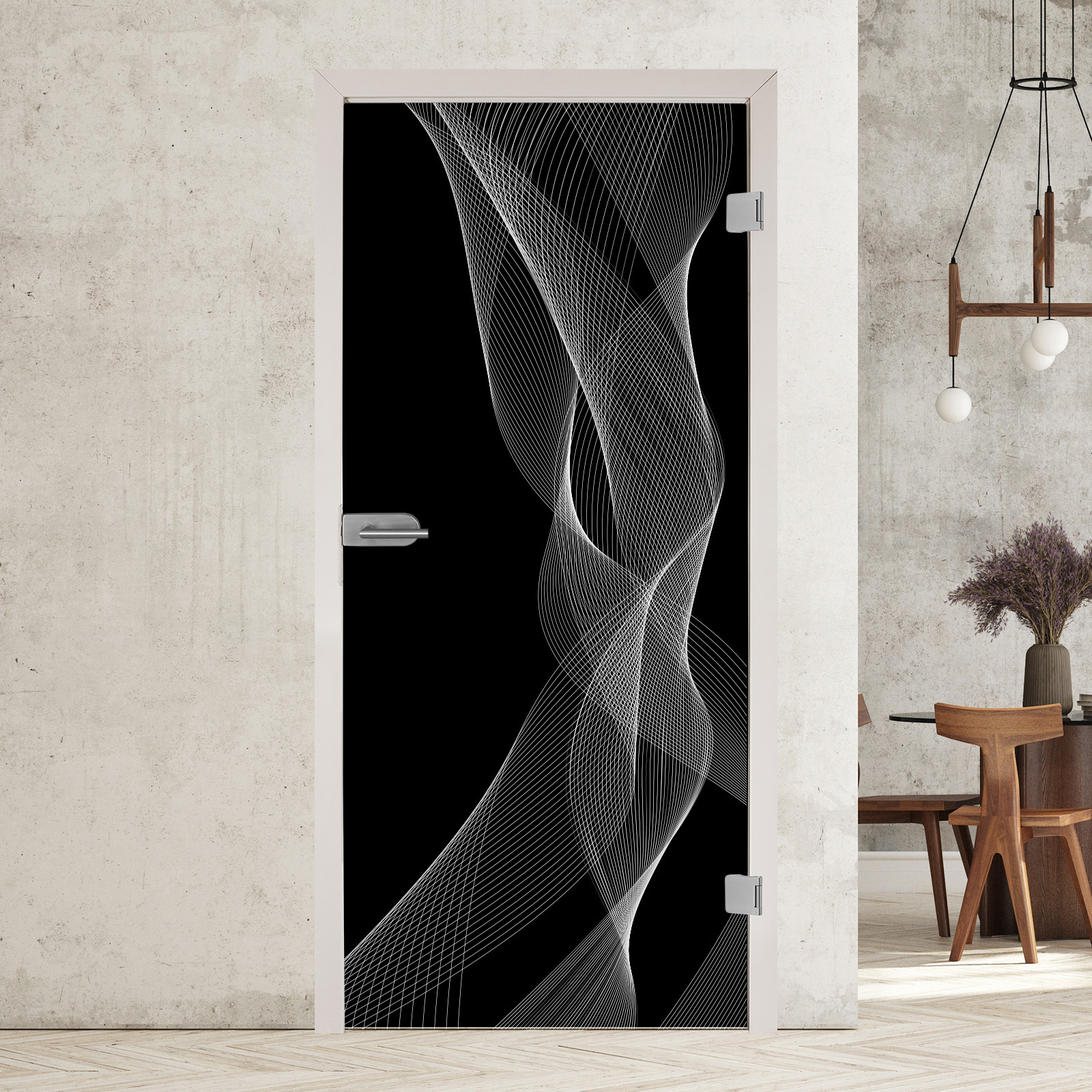 Produktinformationen "Ganzglastür mit Lasergravur "6005" - Schwarzglas"