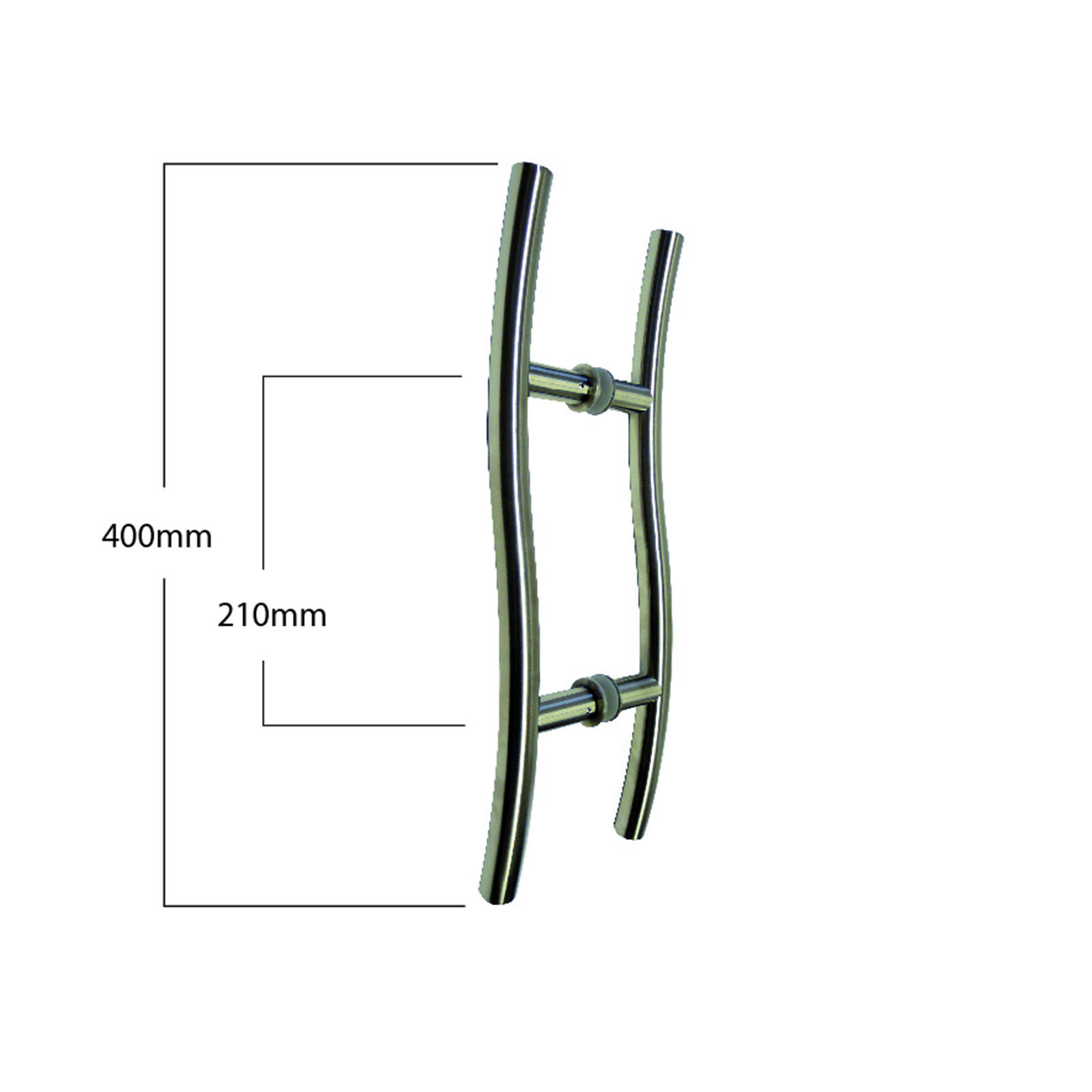 Diese Griffstange besteht aus poliertem Edelstahl, ist 400mm lang und hat einen Lochabstand von 210mm.