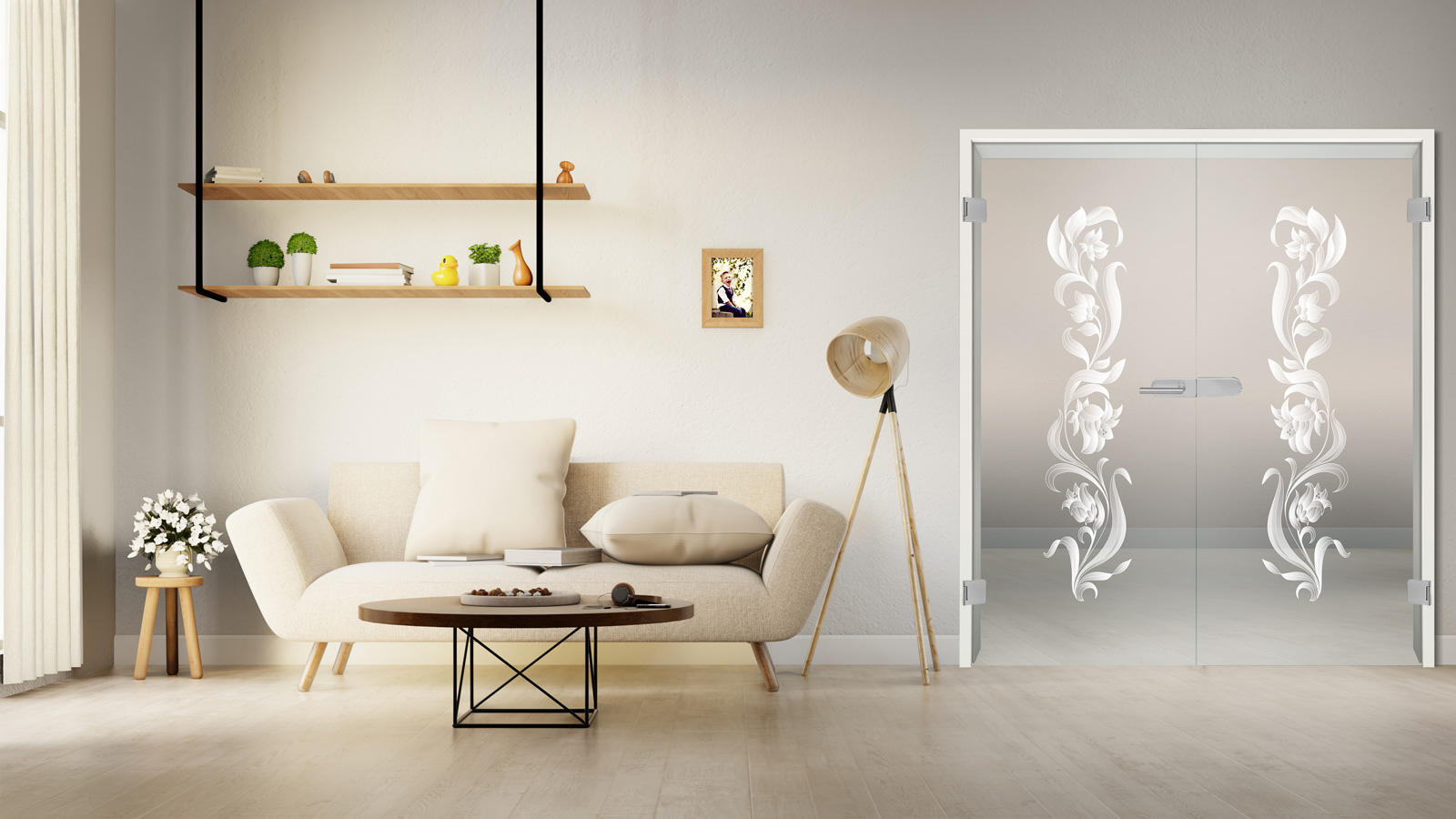 Entscheiden Sie sich für ein lichtdurchflutetes Wohnambiente: Wir haben mit dieser Doppelflügeltür ein klassisches Stilelement geschaffen, das Ihre vier Wände perfekt in Szene setzt. Die Klarglas Ganzglastüre vermitteln hochwertige Qualität und passt sich zeitlos an Ihren Einrichtungsstil an. Das edle Sandstrahldekor mit Schattierung in symmetrischer Form auf beiden Flügeln erzeugt einen klaren und exklusiven Look. Die faszinierende Ausstrahlung dieser Doppelflügeltür steckt im Detail: die hochwertige Verarbeitung durch die professionelle Sandstrahlung sorgt für einen besonders harmonischen Lichteinfall.