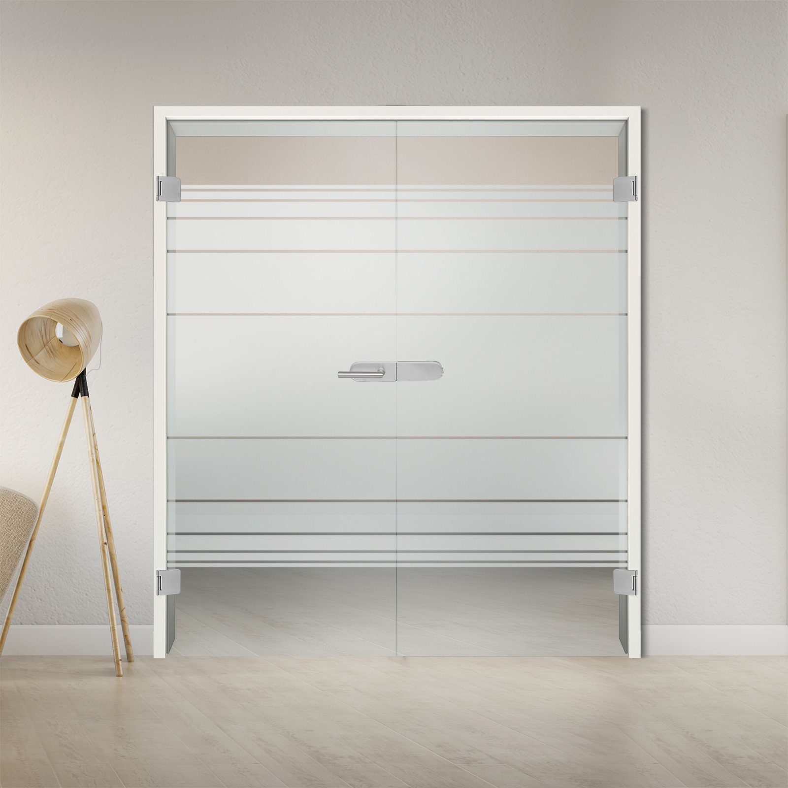 Komplettset Doppelflügeltür mit Sandstrahlung "7001"inkl. Blendrahmen & Beschlag