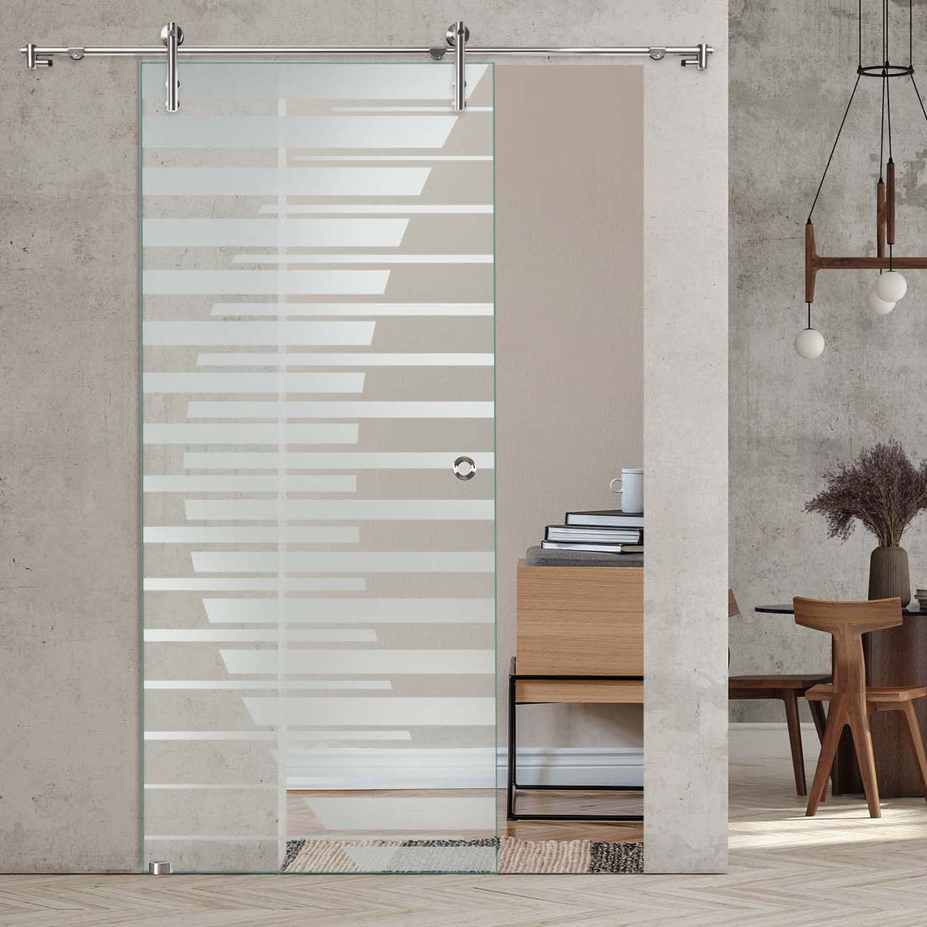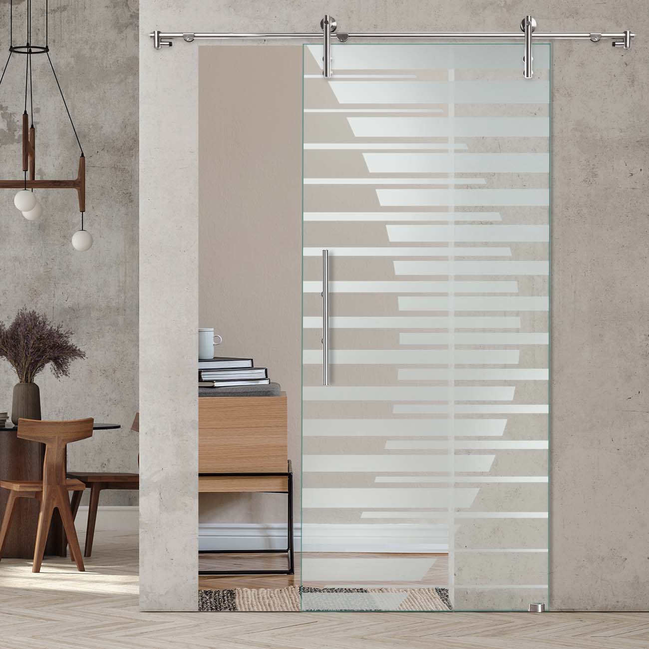Produktinformationen "Schiebetür "257" mit V1000-Schiebesystem mit Sandstrahlung "