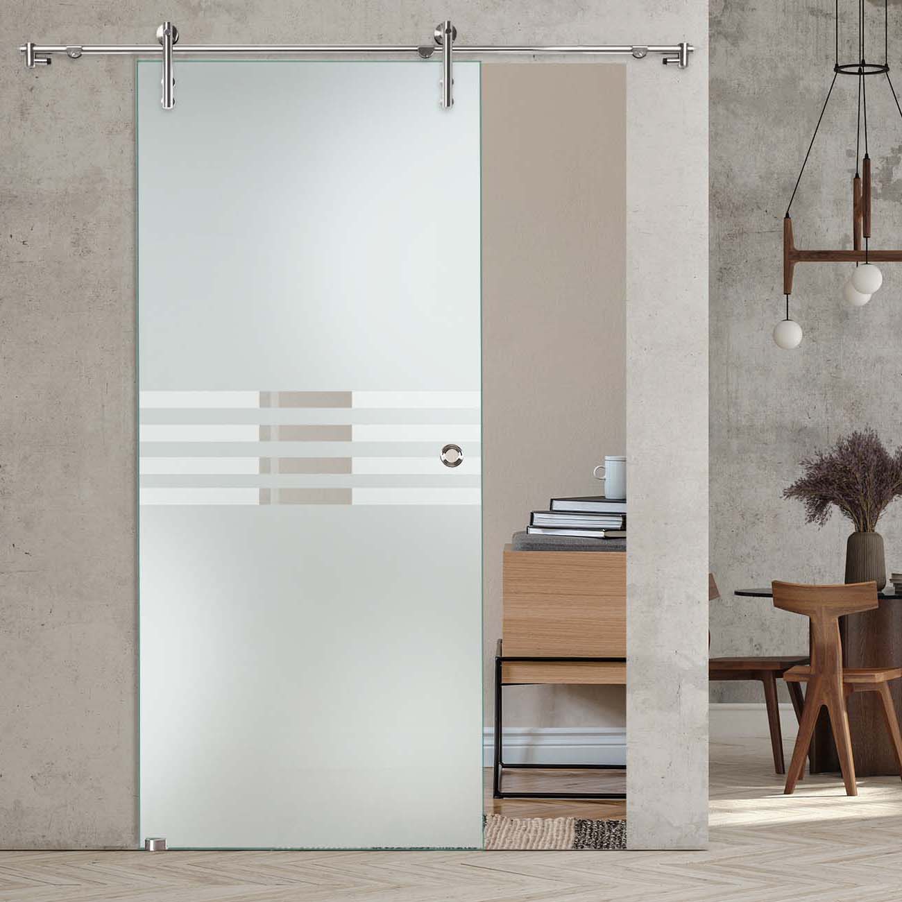 Produktinformationen "Schiebetür "259" mit V1000-Schiebesystem mit Sandstrahlung "