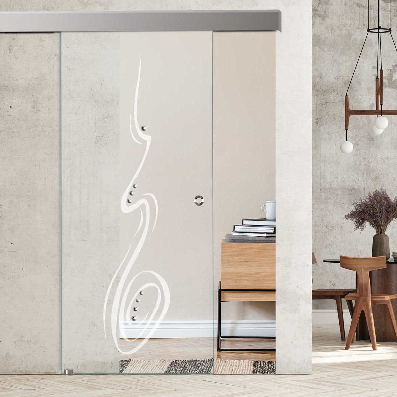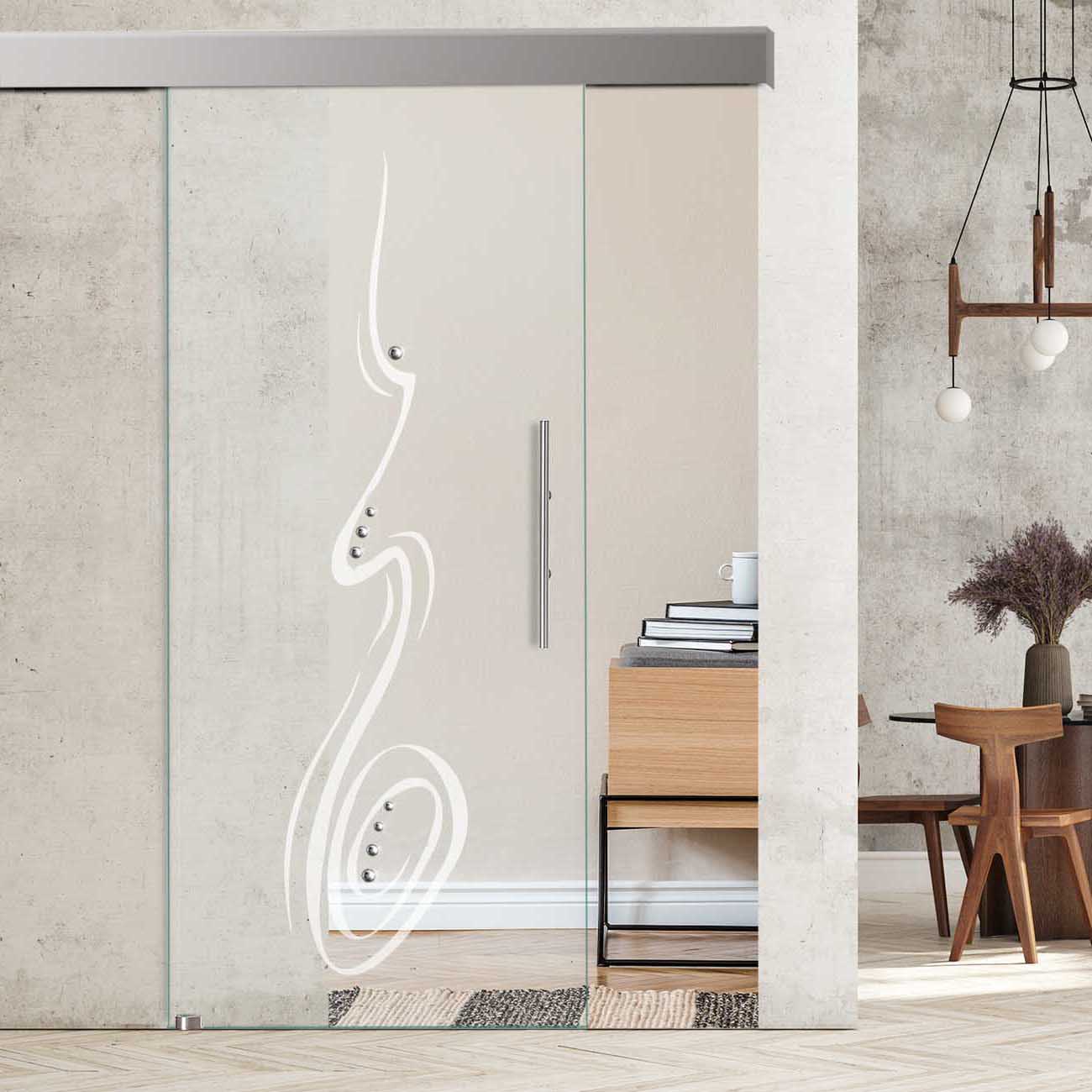 Produktinformationen "Schiebetür "282" mit Alu60-Schiebesystem, Schmucksteinen & Sandstrahlung"