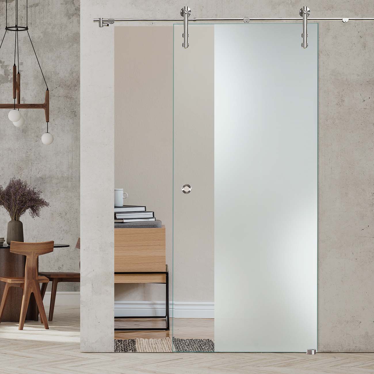 Produktinformationen "Schiebetür "295" mit V1000-Schiebesystem mit Sandstrahlung"