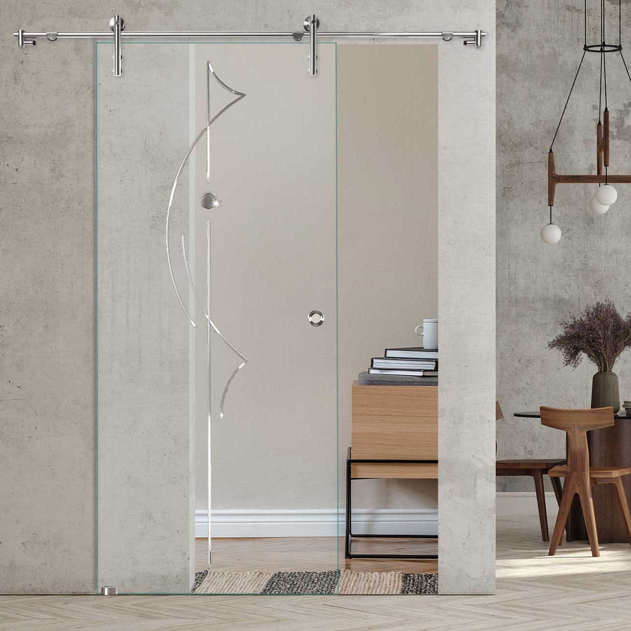 Produktinformationen "Schiebetür "813" mit V1000-Schiebesystem, mit einem Schmuckstein und mit Rillenschliff "
