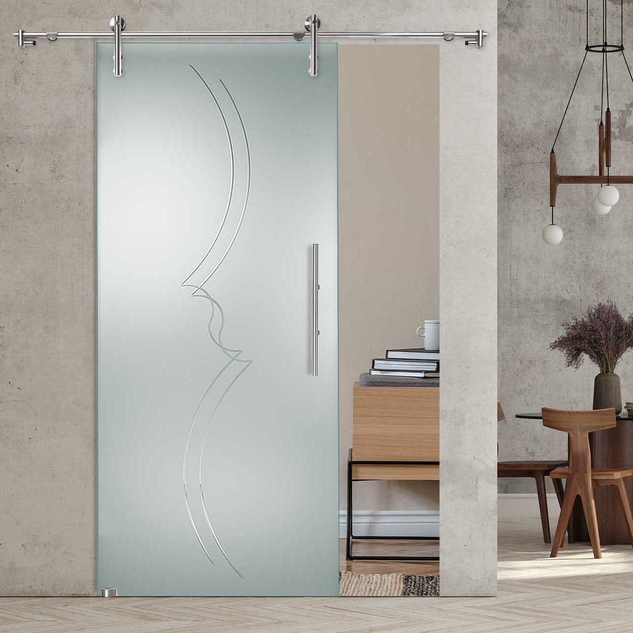 Produktinformationen "Schiebetür "847" mit V1000-Schiebesystem und Rillenschliff "