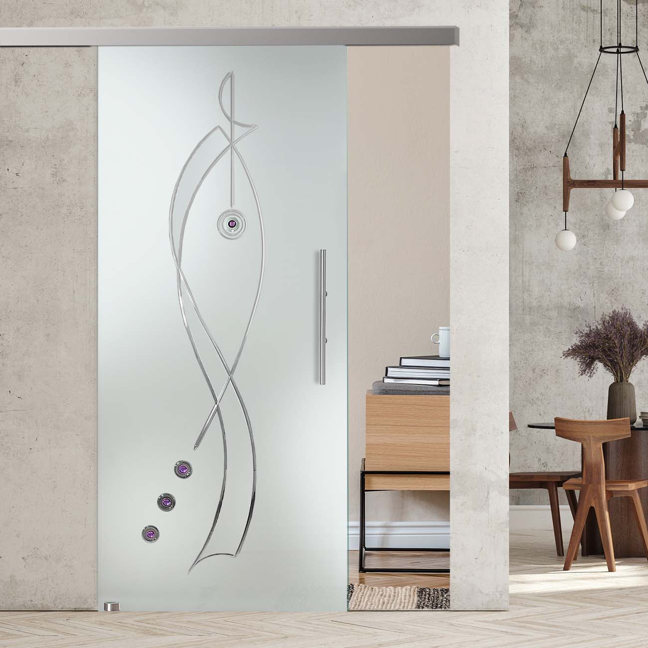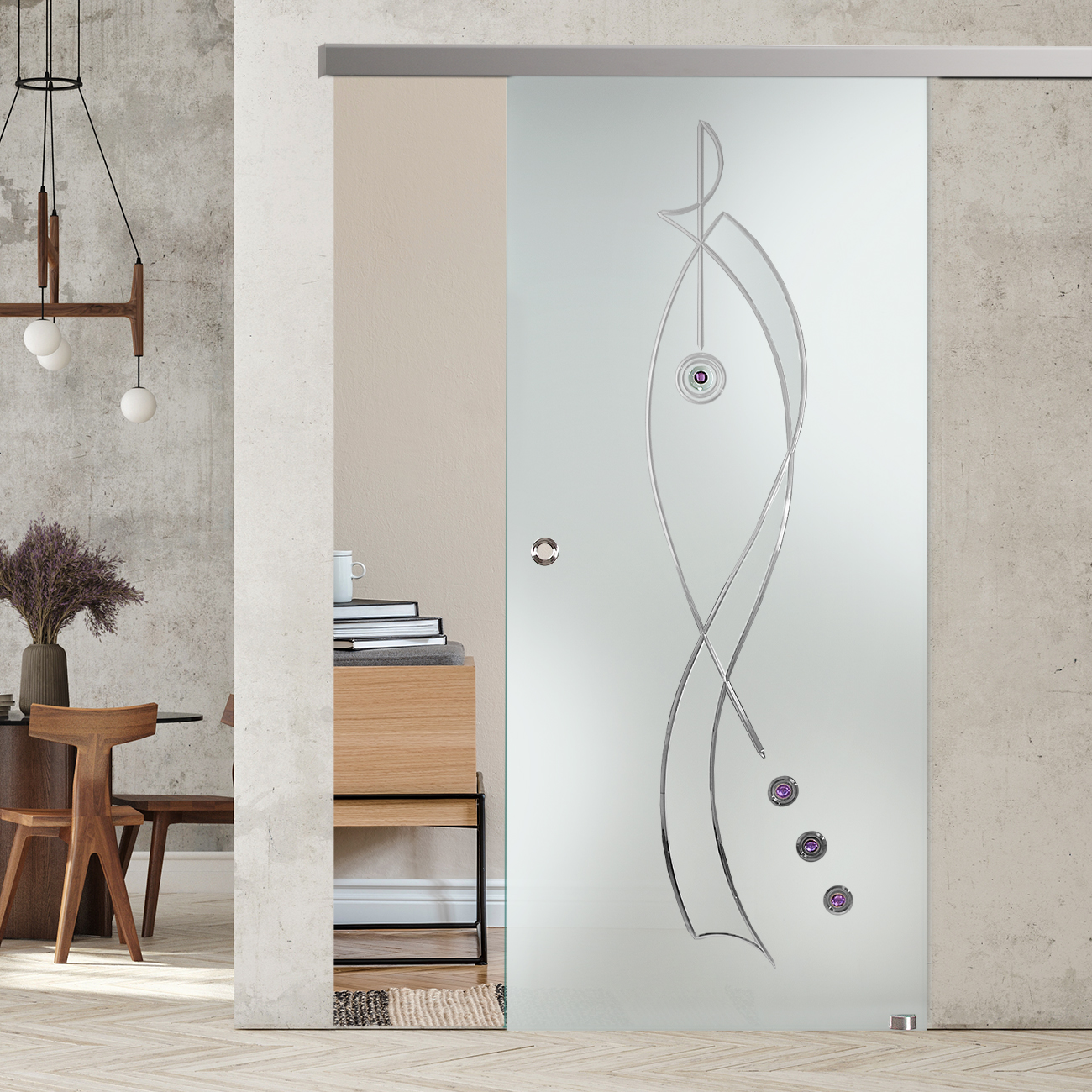 Produktinformationen "Schiebetür "863 S" mit AG50-Schiebesystem, Rillenschliff und Schmucksteinen"