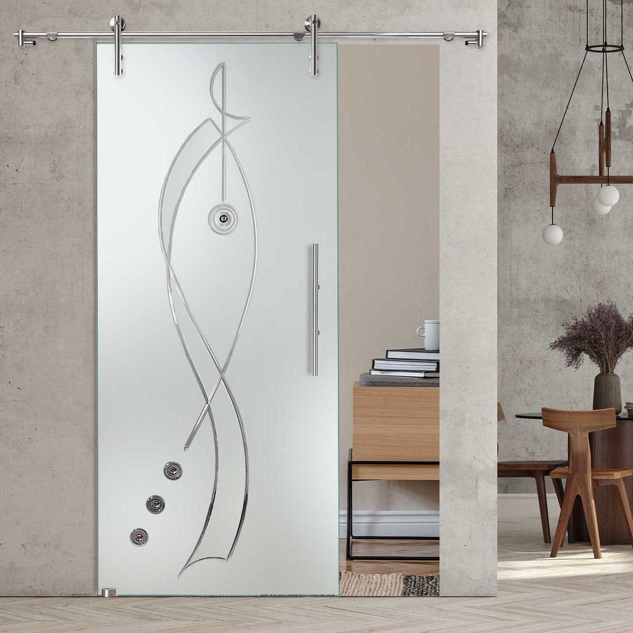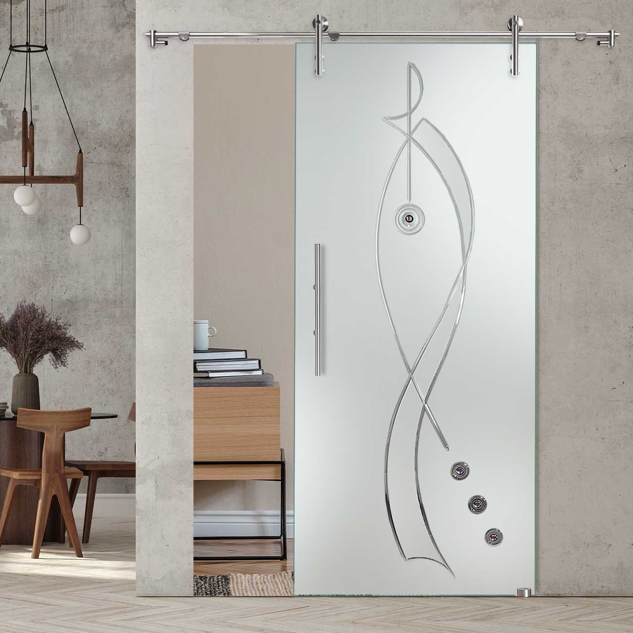 Produktinformationen "Schiebetür "863" mit V1000-Schiebesystem und Rillenschliff "