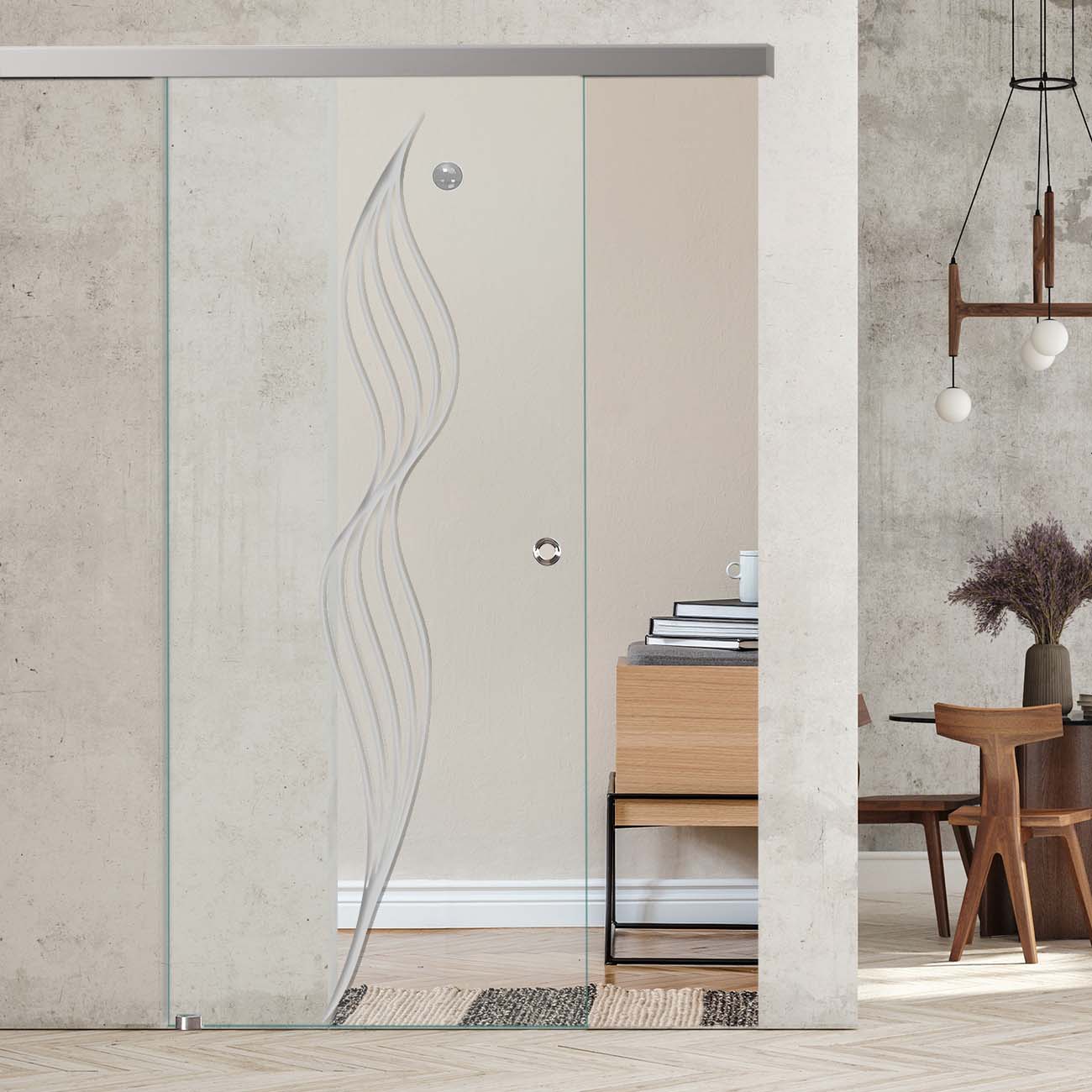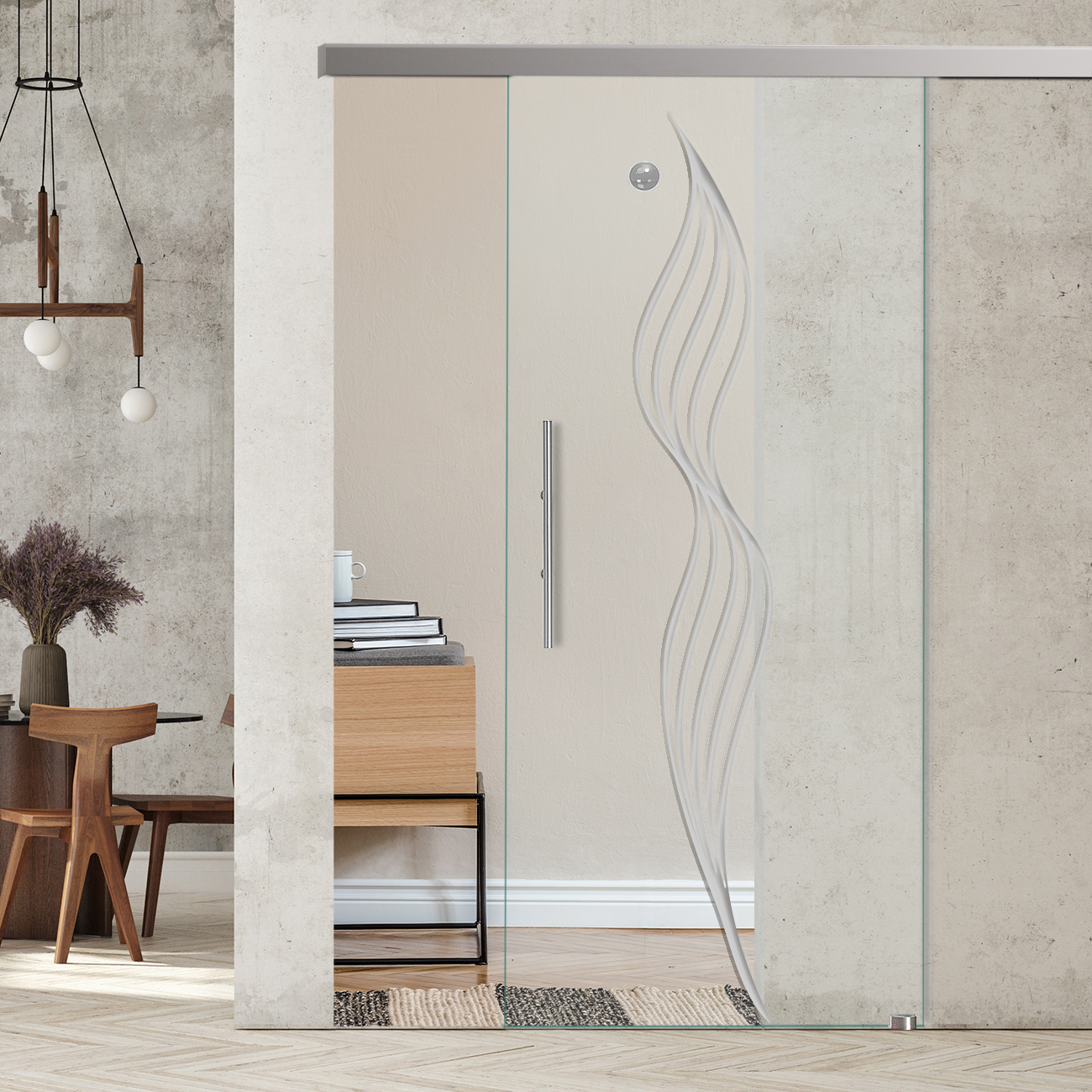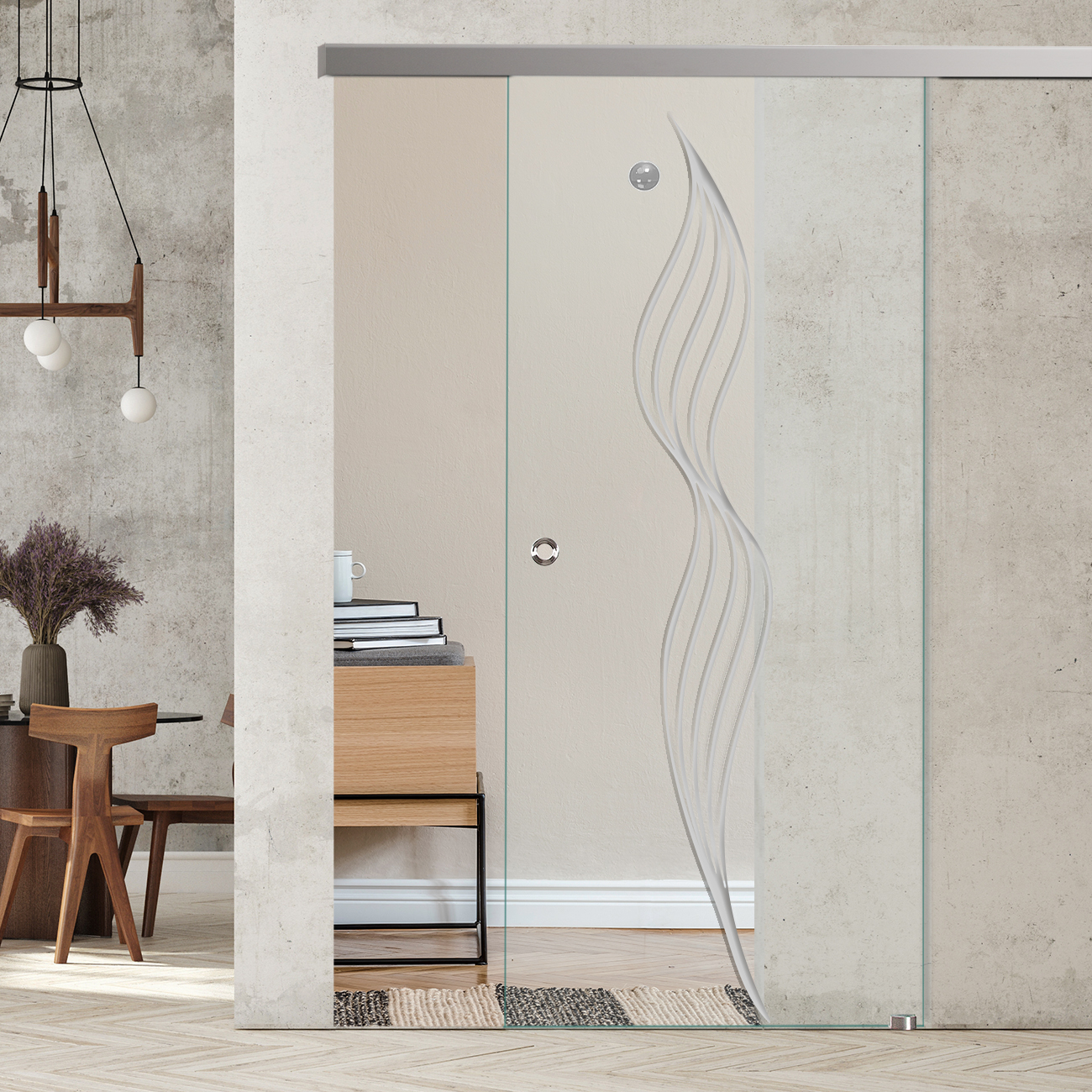 Produktinformationen "Schiebetür "864 F" mit AG50-Schiebesystem, Rillenschliff und Schmucksteinen"