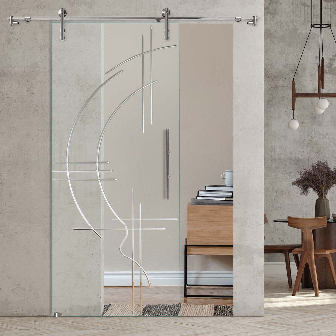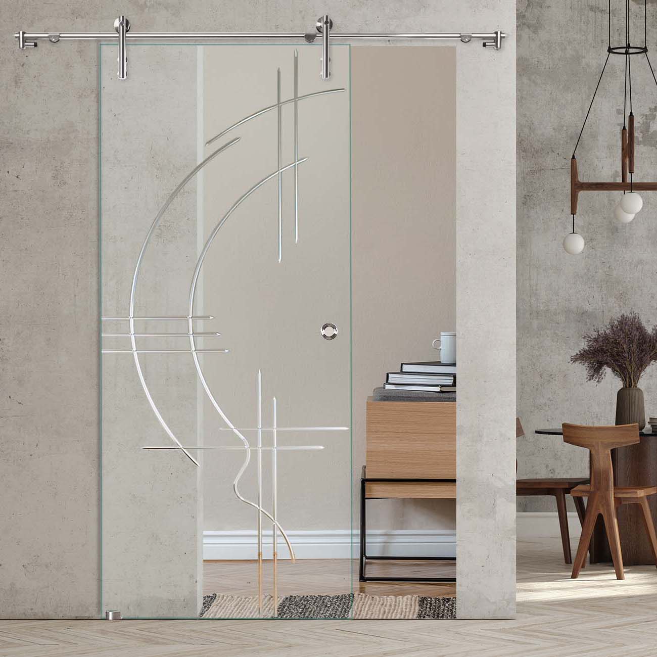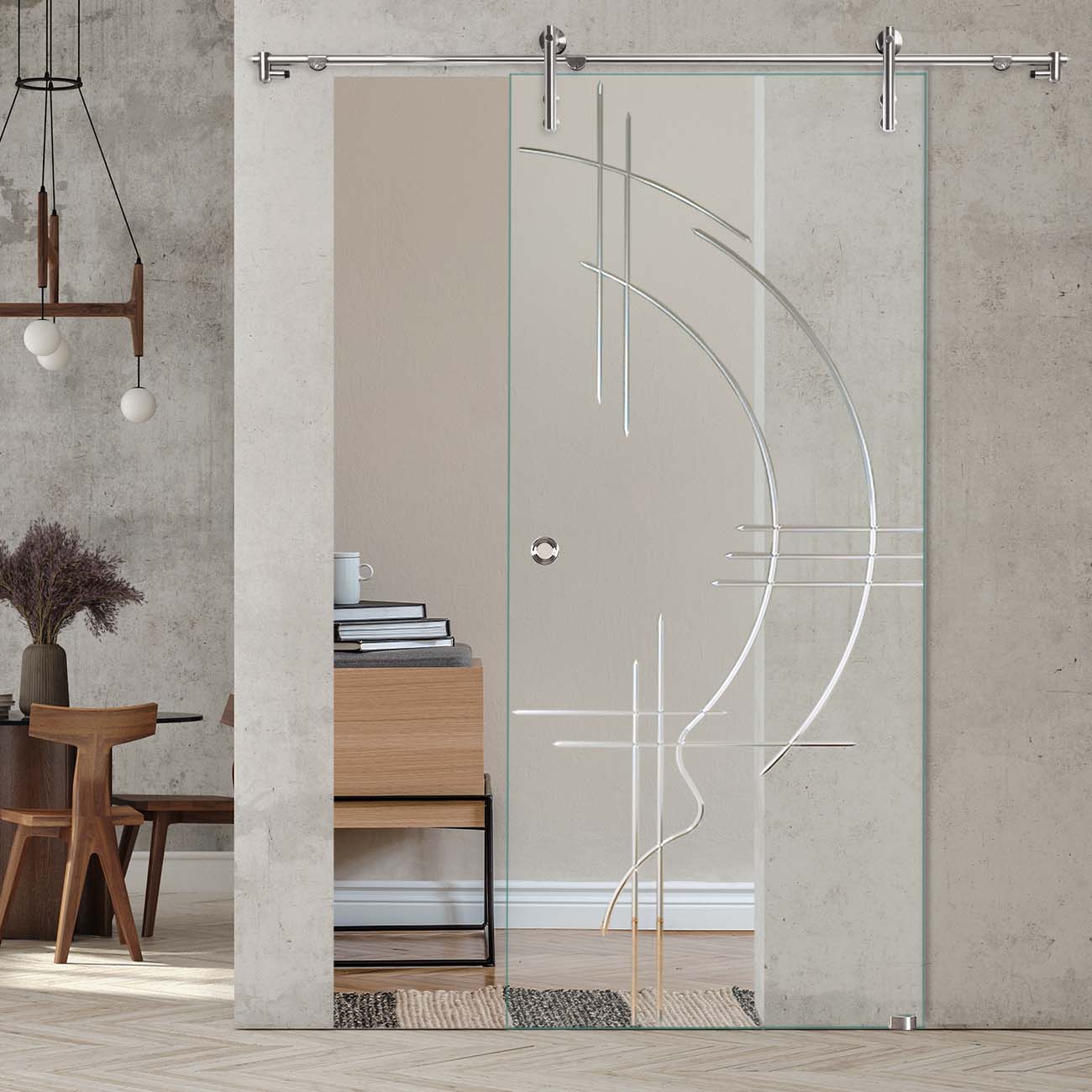 Produktinformationen "Schiebetür "866 F OS" mit V1000-Schiebesystem und Rillenschliff "