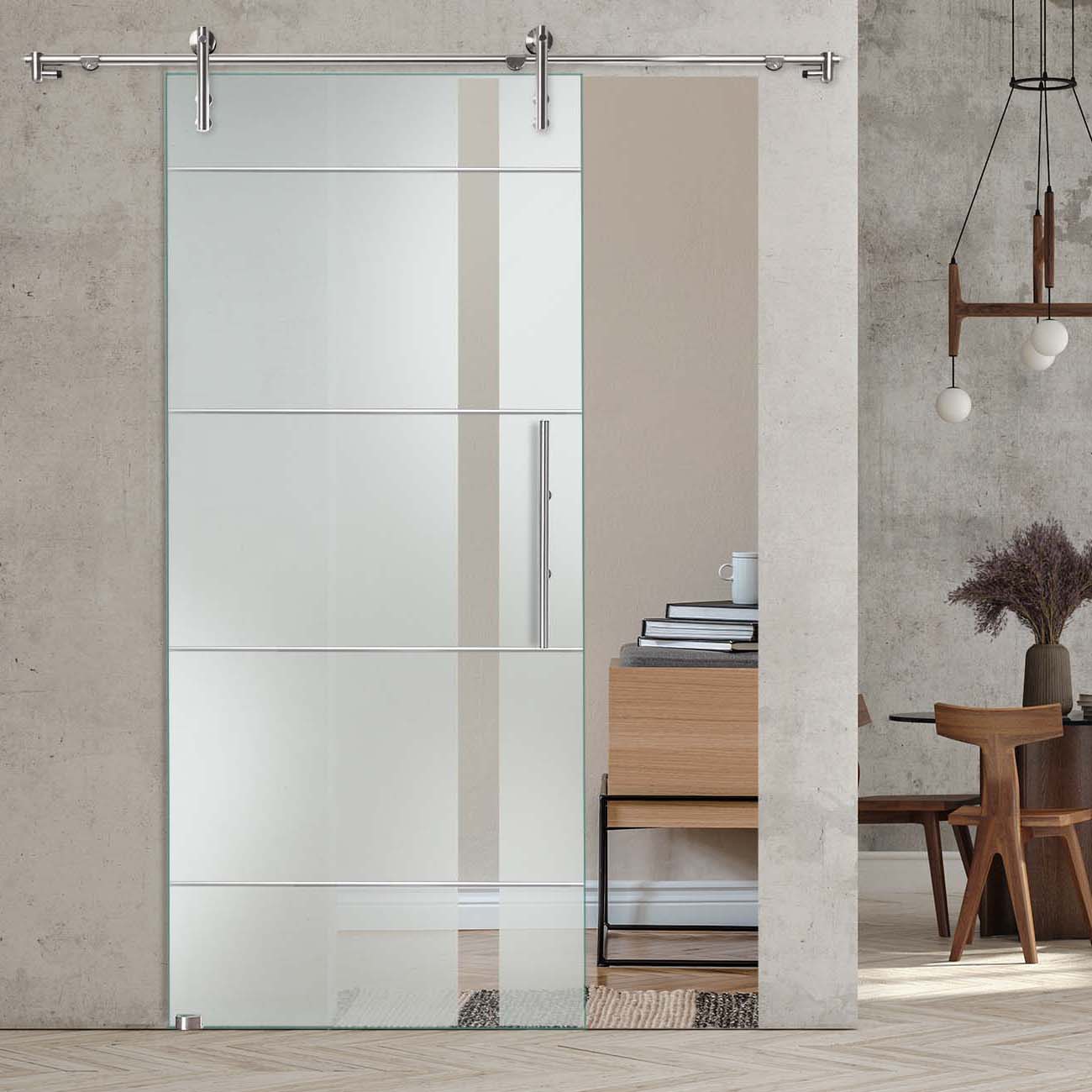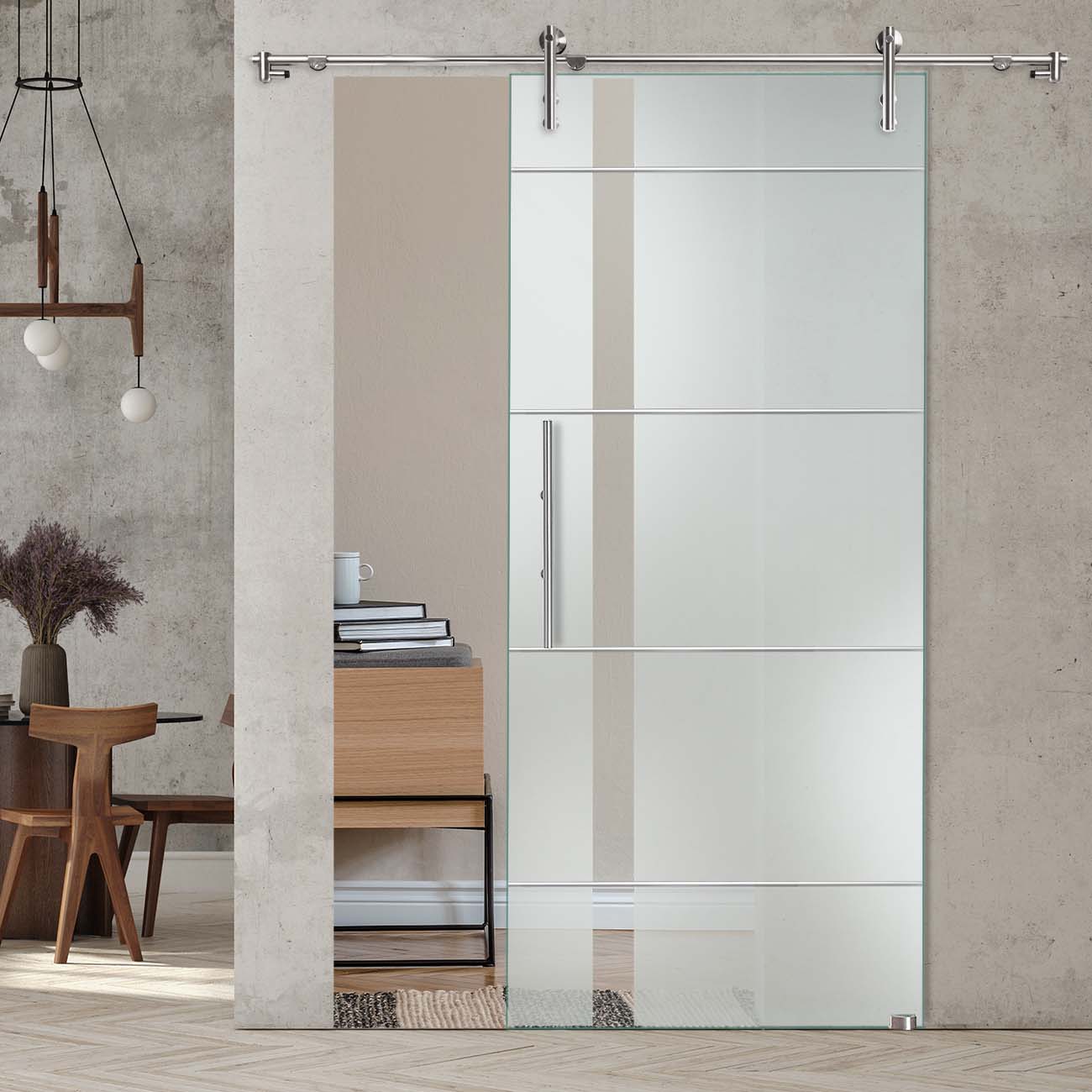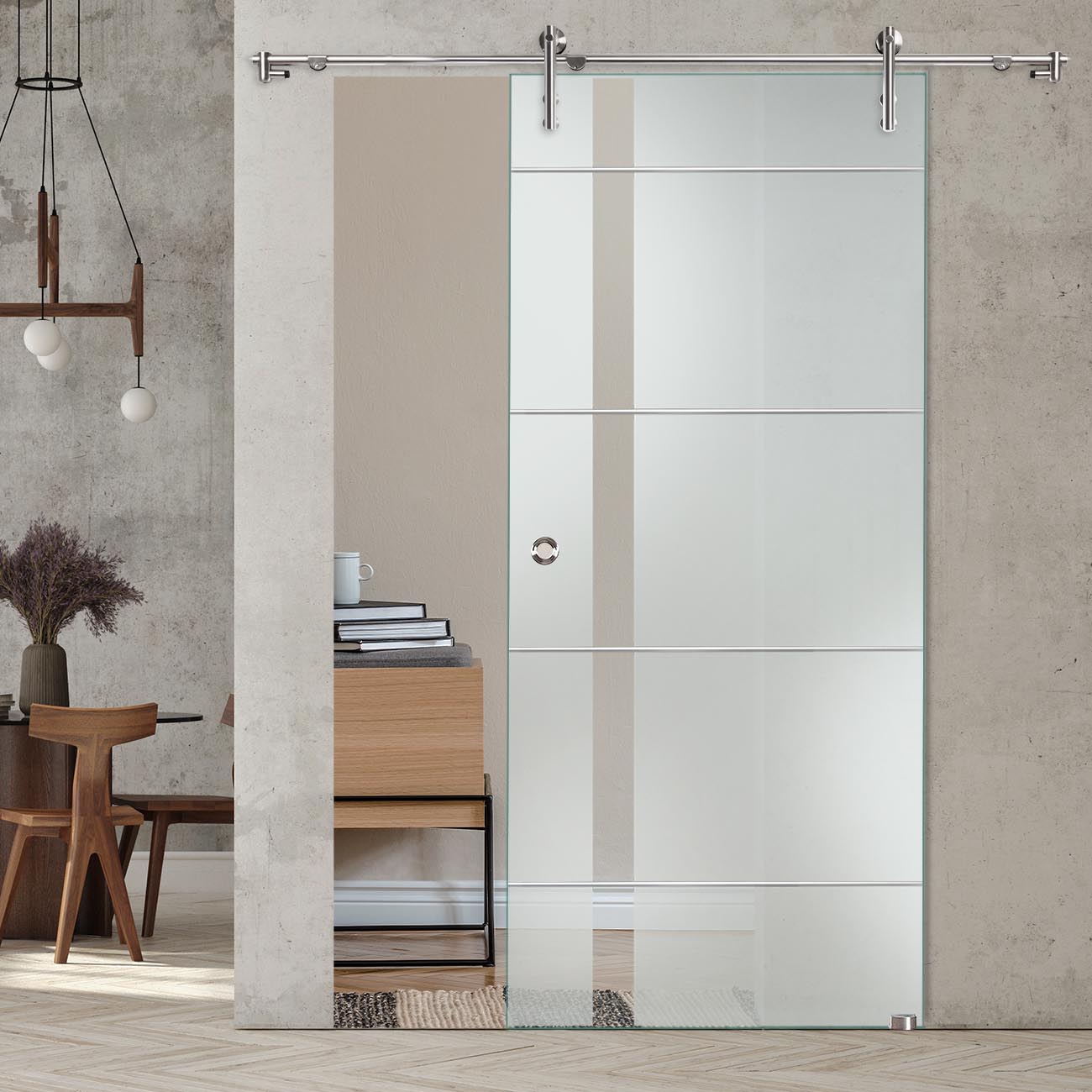 Produktinformationen "Schiebetür "877" mit V1000-Schiebesystem und Rillenschliff "
