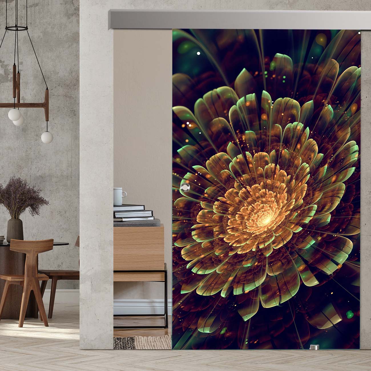 Produktinformationen "Schiebetür Blume Abstrakt "1002" mit Alu60-Schiebesystem"