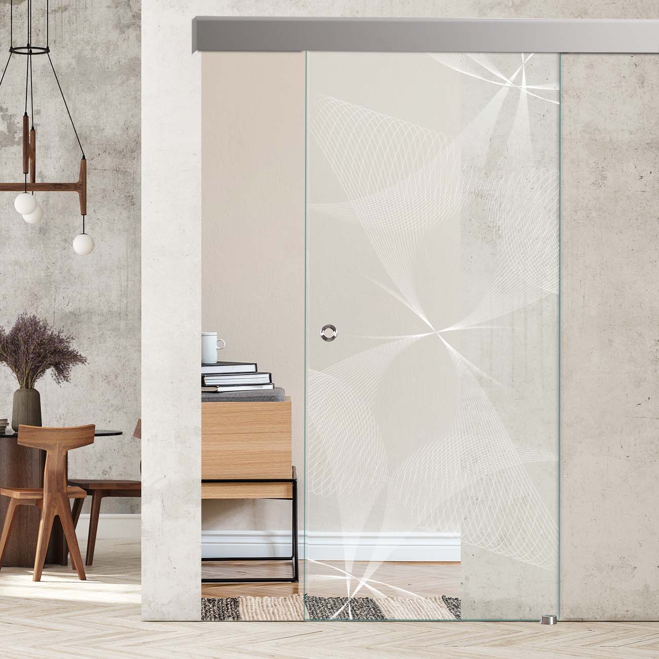 Produktinformationen "Schiebetür Fly "6002-F" mit Alu60-Schiebesystem & Lasergravur "