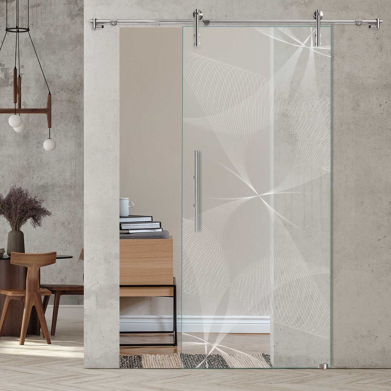 Produktinformationen "Schiebetür Fly "6002" mit V1000-Schiebesystem und Lasergravur"