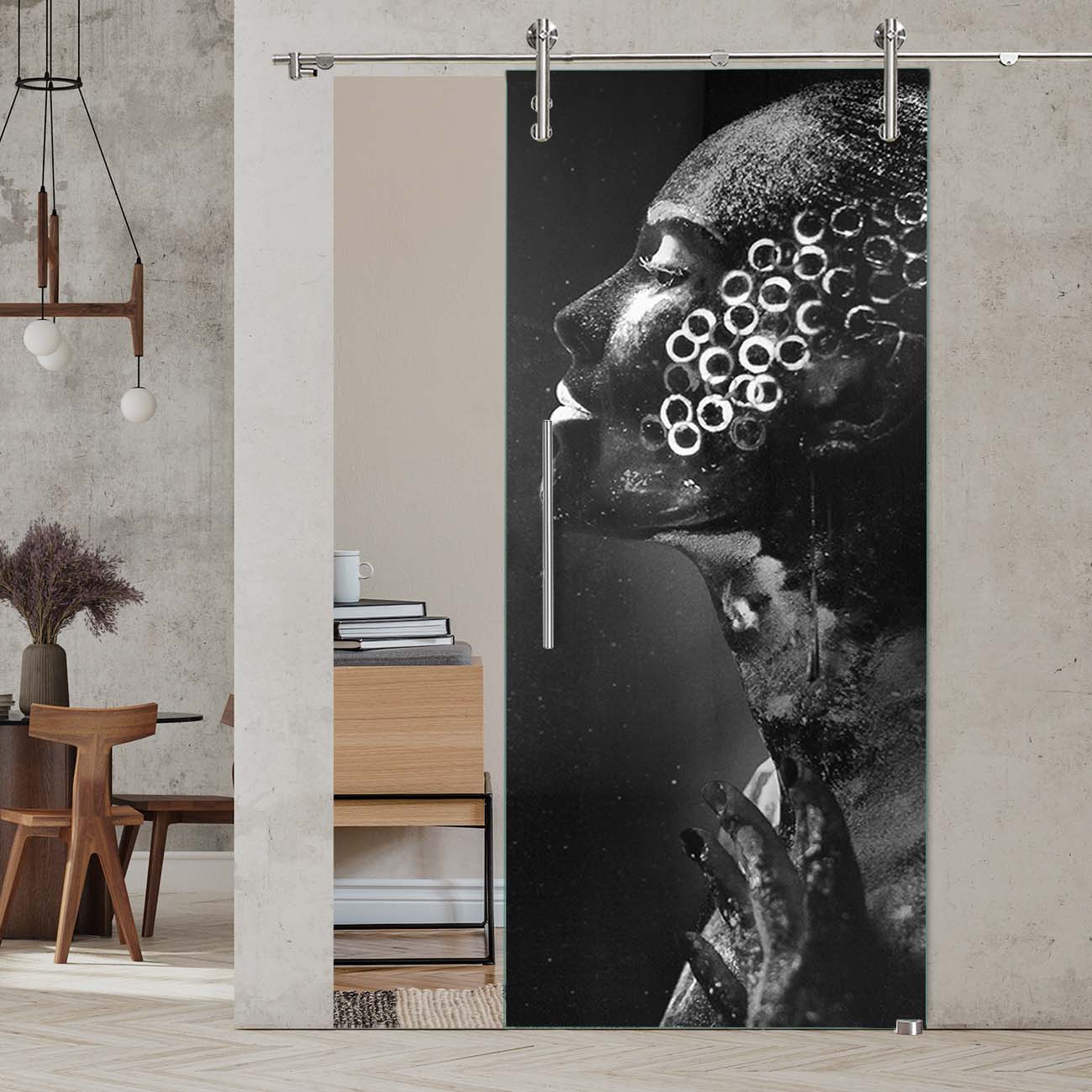 Produktinformationen "Schiebetür "LD003" mit V1000-Schiebesystem und Lasergravur "