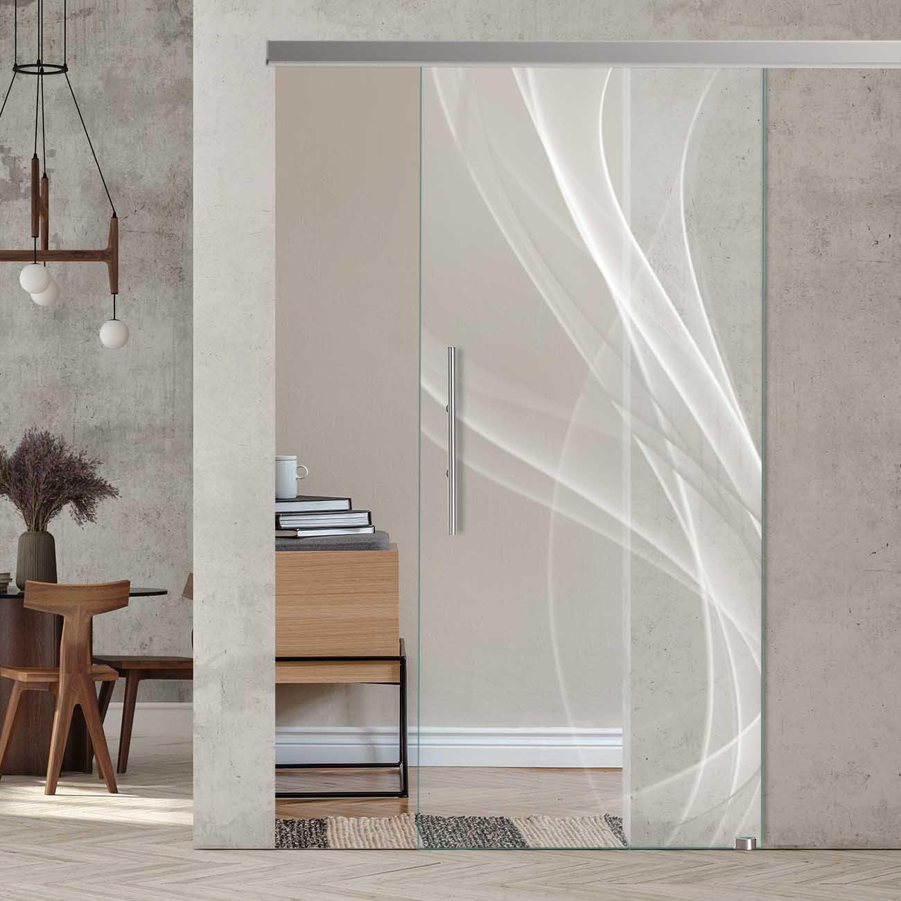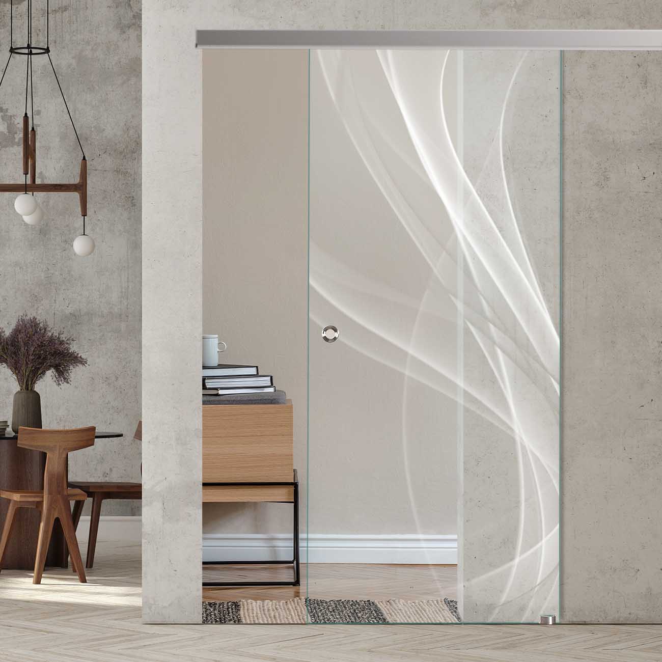 Das Dekor „LD004“ ist etwas ganz Besonderes durch seine moderne und farblos schlichte Darstellung eines Rauchwirbels, den es sowohl mit klarem, mattem und schwarzen Hintergrund gibt. Es ist schlicht und zeitlos modern und fügt sich problemlos in jede Wohnsituation ein.