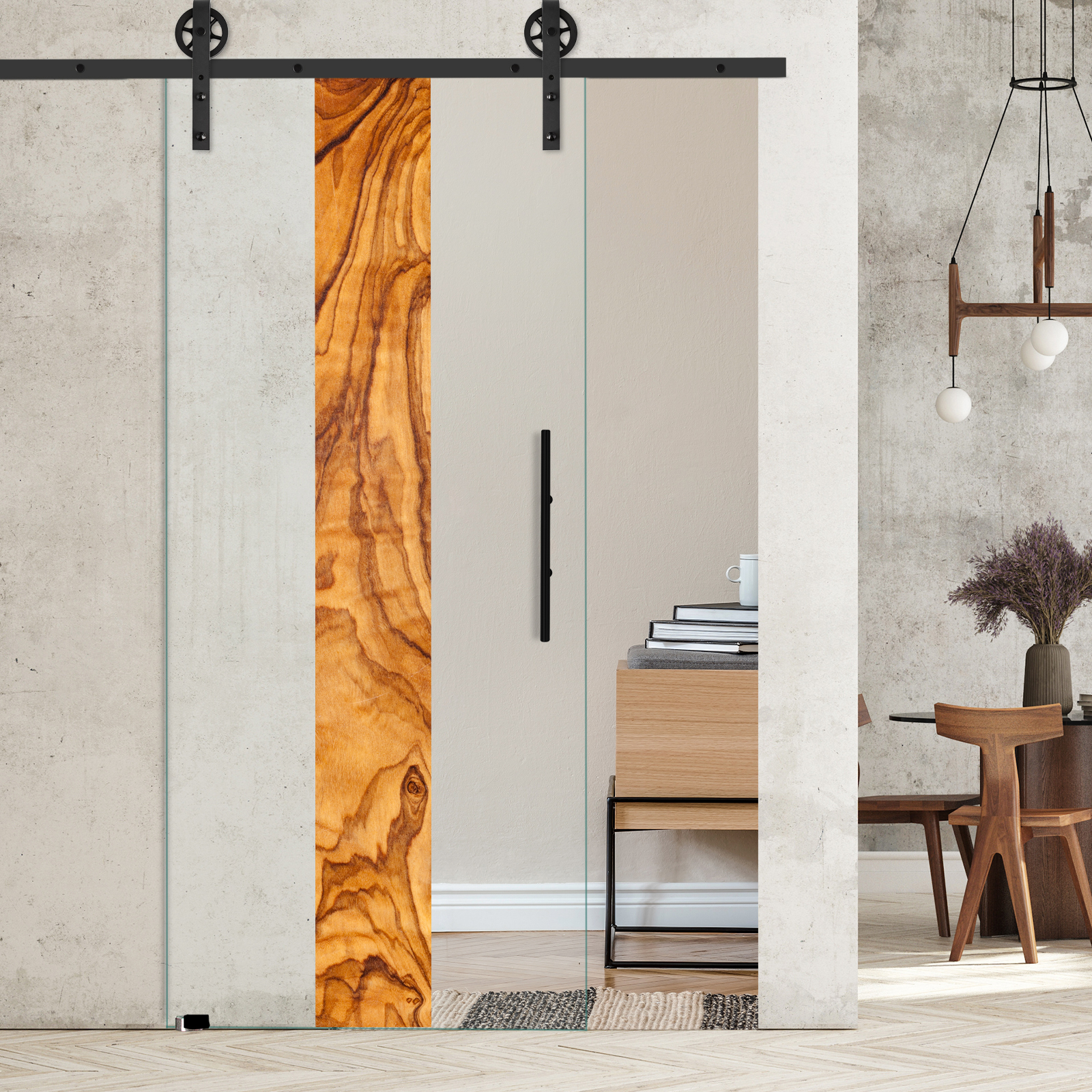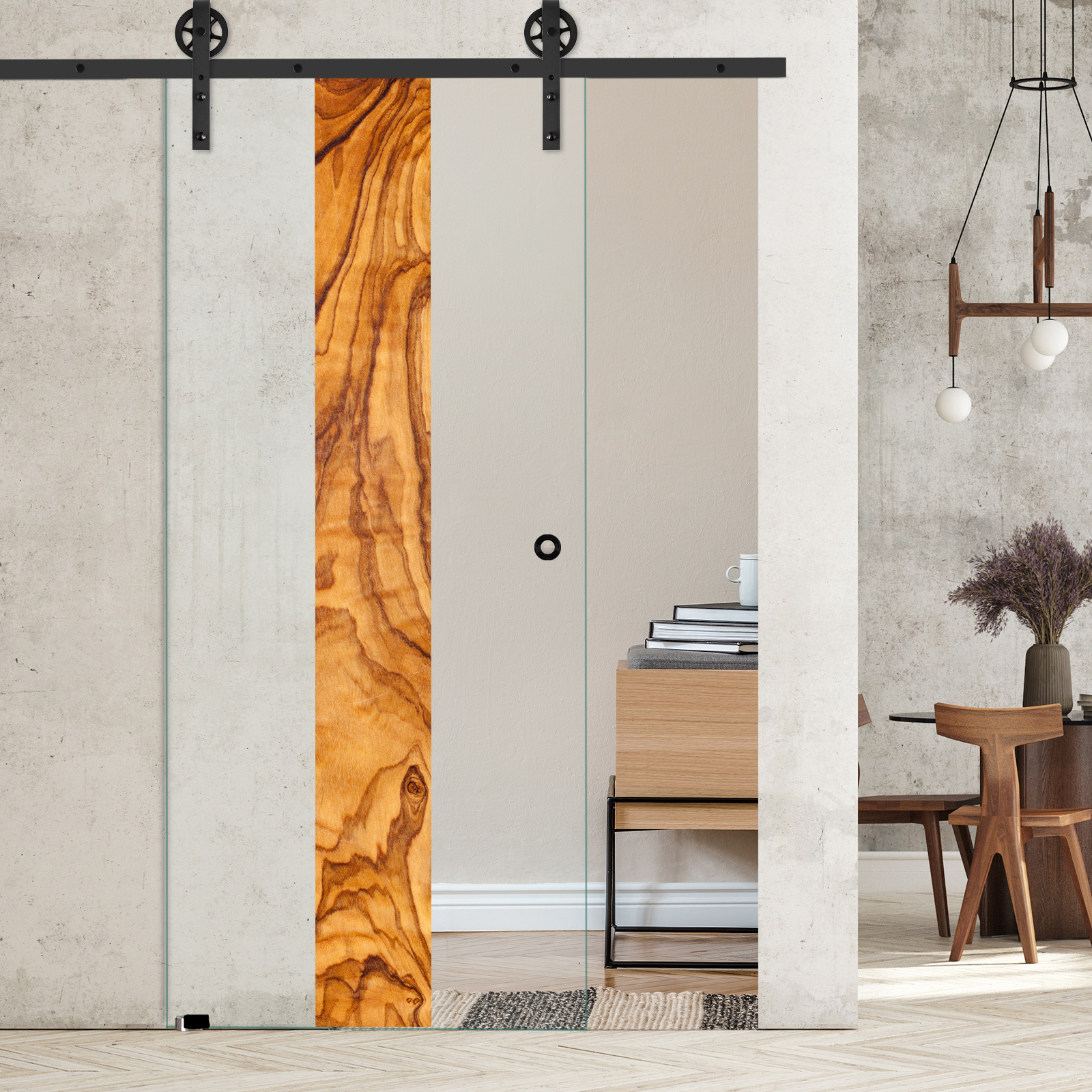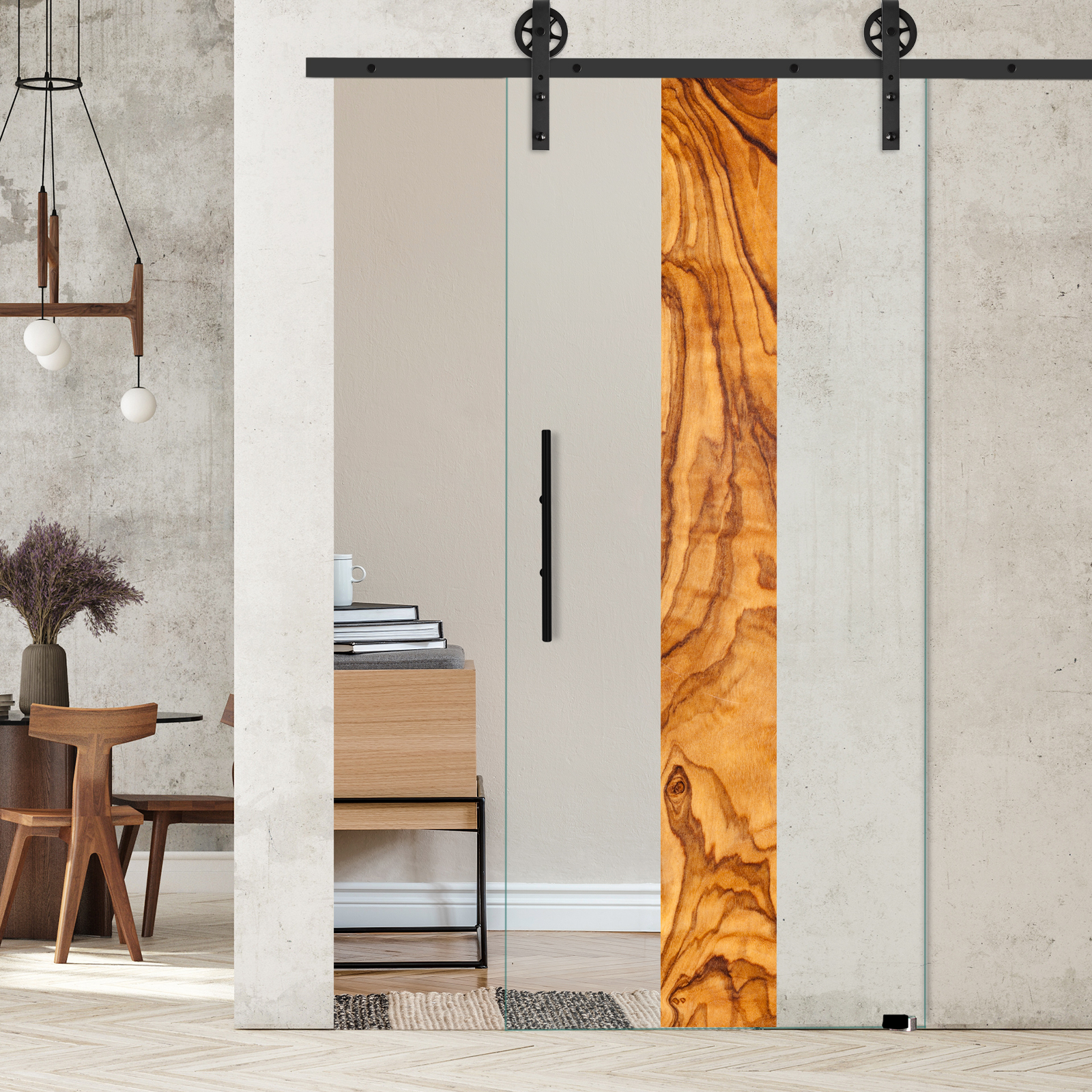 Produktinformationen "Schiebetür Olivenholz vertikal 1163 mit Corvara-Schiebesystem"