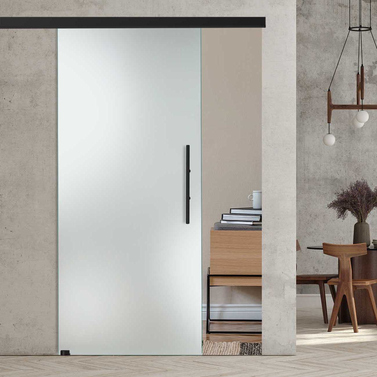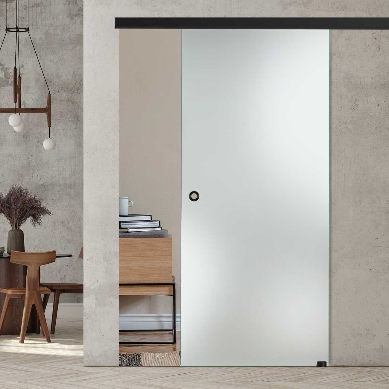 Produktinformationen "Schiebetür Satinato/Milchglas mit Slimline45-Blackline-Schiebesystem"