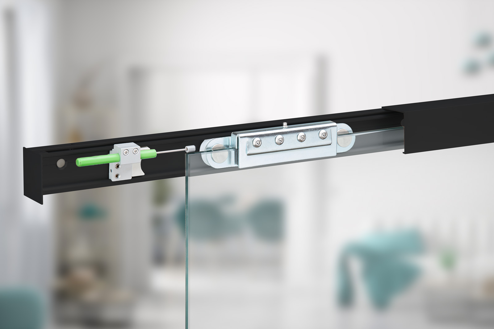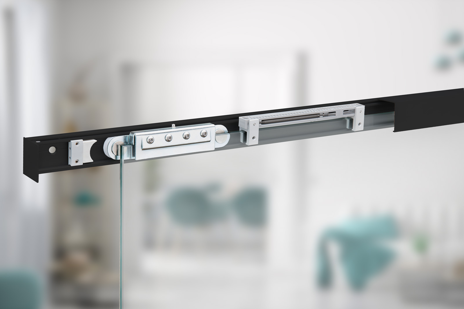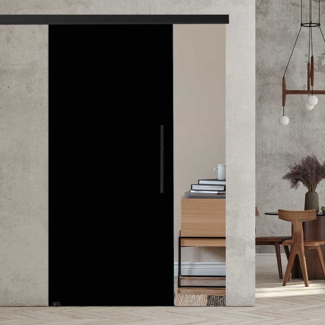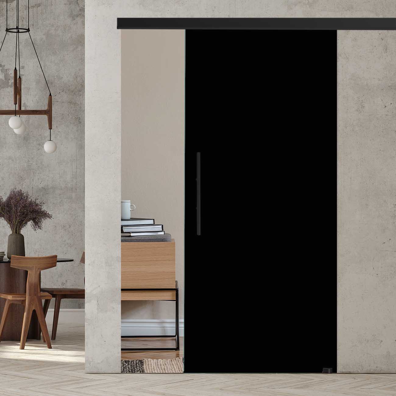 Produktinformationen "Schiebetür Siebdruck schwarz mit Slimline45-Blackline-Schiebesystem"