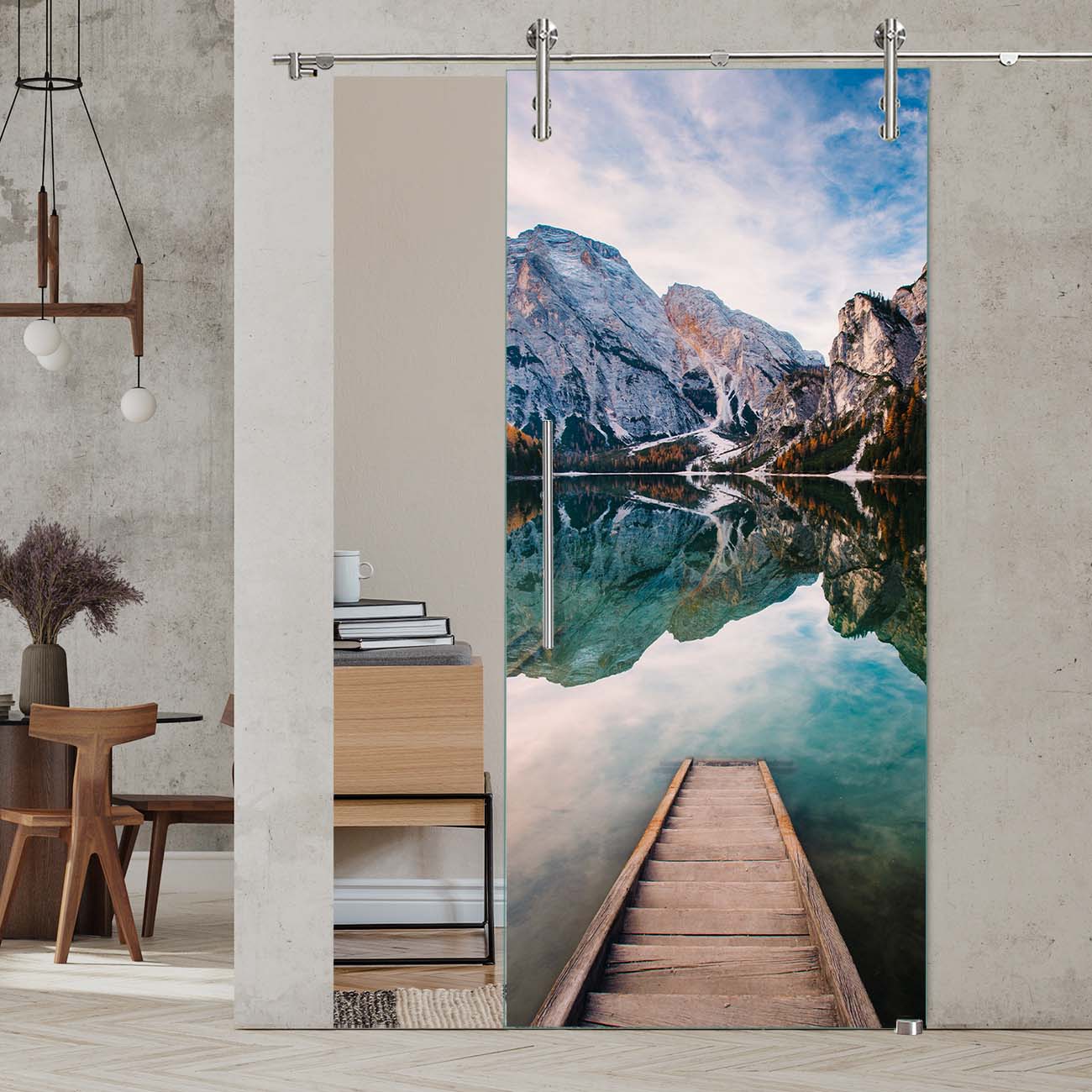 Das Dekor „1135“ ist etwas ganz Besonderes durch seine ruhige und harmonische Darstellung eines Holzsteges, der auf einen ruhigen spiegelnden Bergsee umgeben von schneebedeckten Gipfeln hinführt. Es ist schlicht und zeitlos modern und fügt sich problemlos in jede Wohnsituation ein. Dieses Dekor lässt durch das, durch Digitaldruck erzeugtes, Bild genug Licht für ihre Wohnräume!