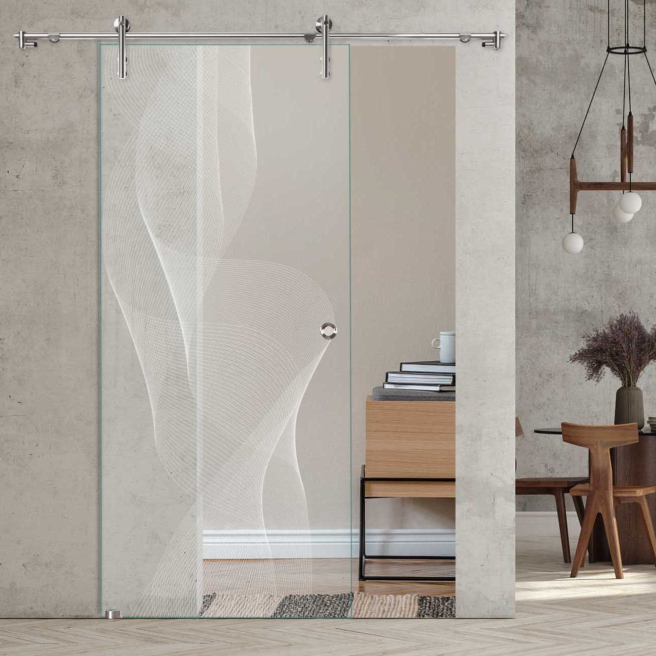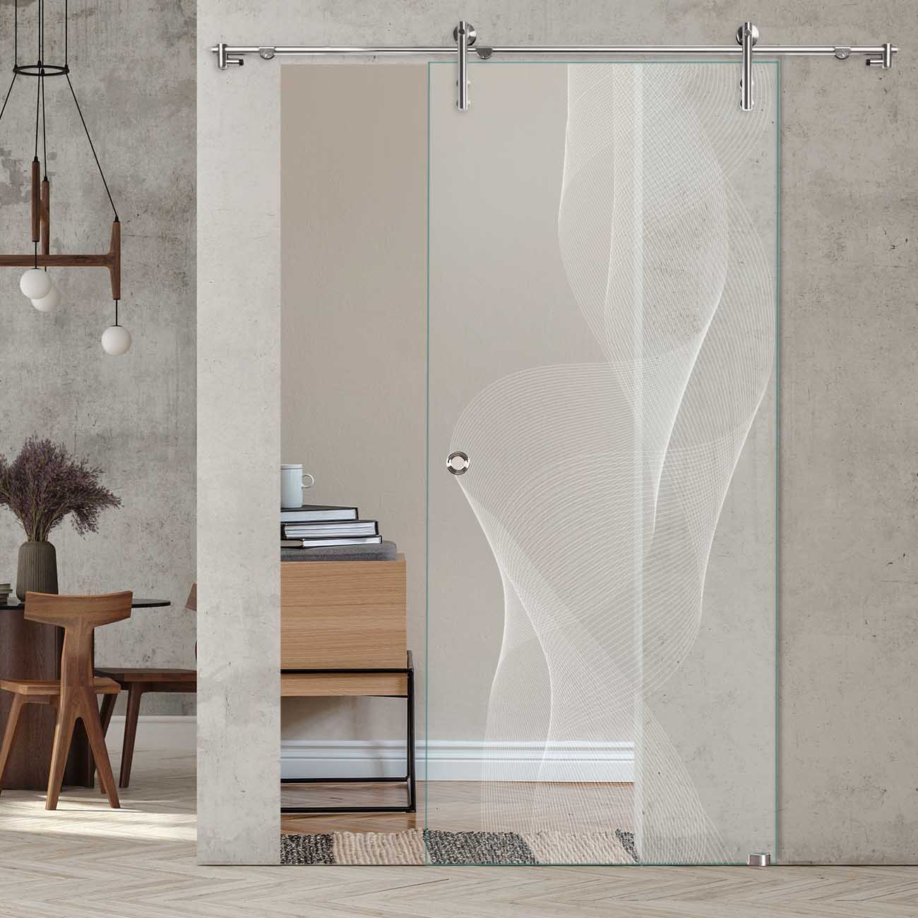 Produktinformationen "Schiebetür Wirbel "6006" mit V1000-Schiebesystem und Lasergravur"