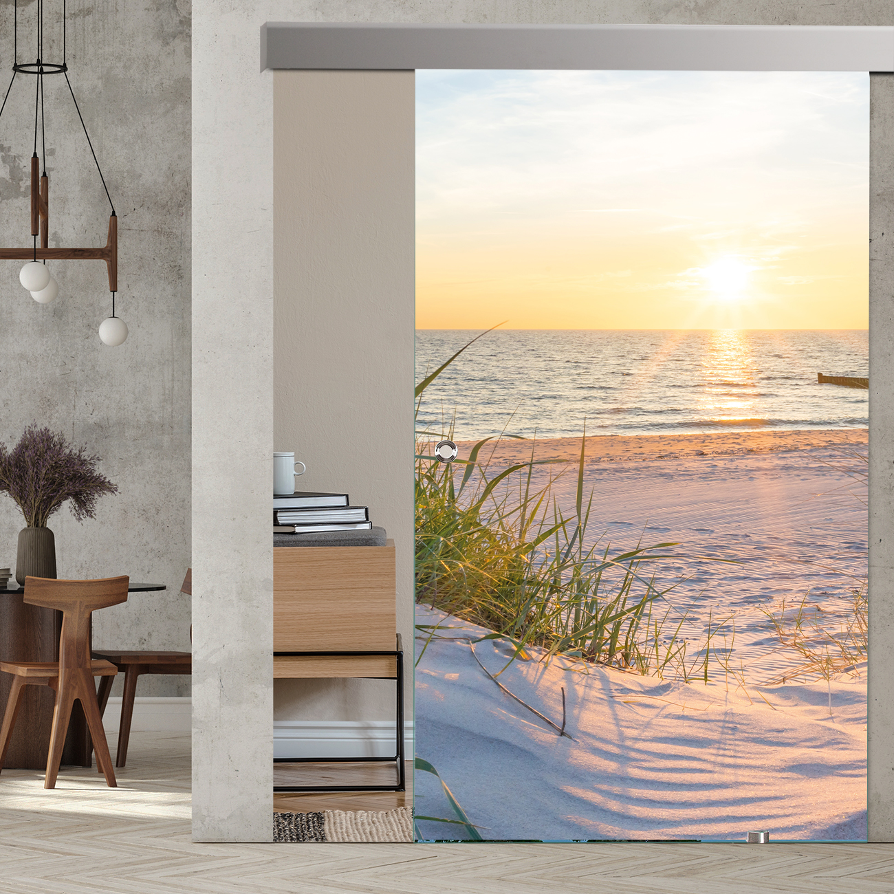 Einen Sonnenaufgang sieht man doch immer wieder gern, kombiniert man das ganze noch mit einem Sandstrand und ein paar Gräsern hat man ein Wunderschönes Gesamtbild, welches es wirklich verdient auf einer Tür zu landen. Holen Sie sich wohlige Stimmung eines Sonnenaufgangs in Ihren Wohnraum mit dem Dekor „1105“. Dieses Dekor lässt trotz des Digitaldrucks Licht in Ihre Räume!