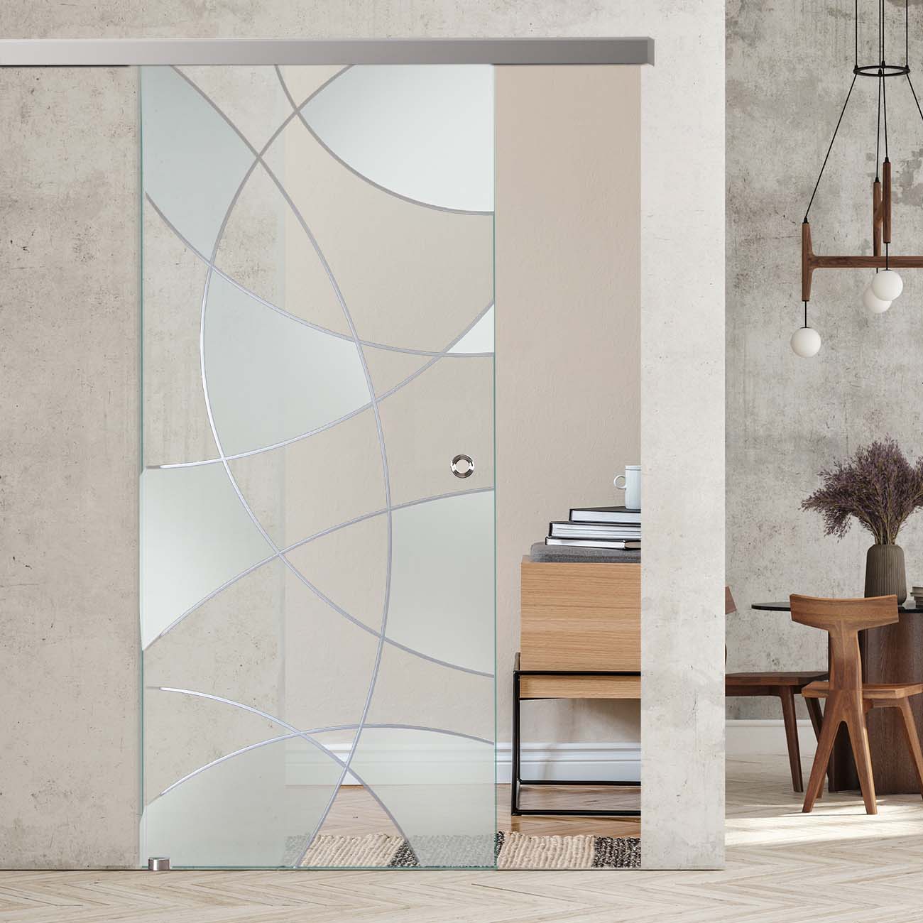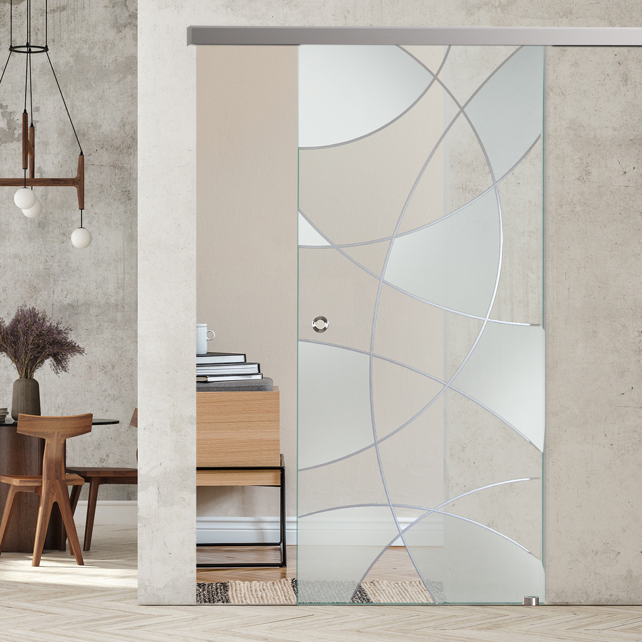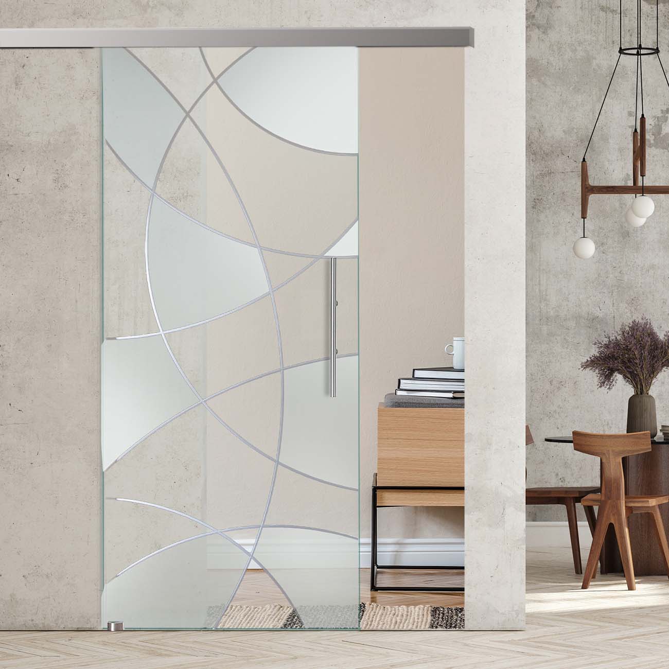 Produktinformationen "Schiebetür mit Rillenschliffdekor "887-F2" mit Slimline45-Schiebesystem "
