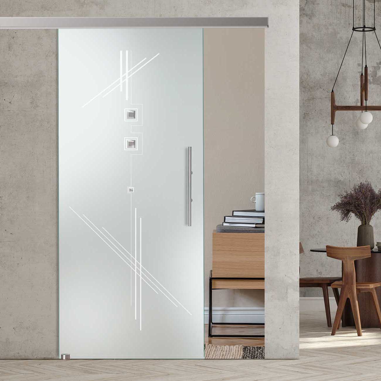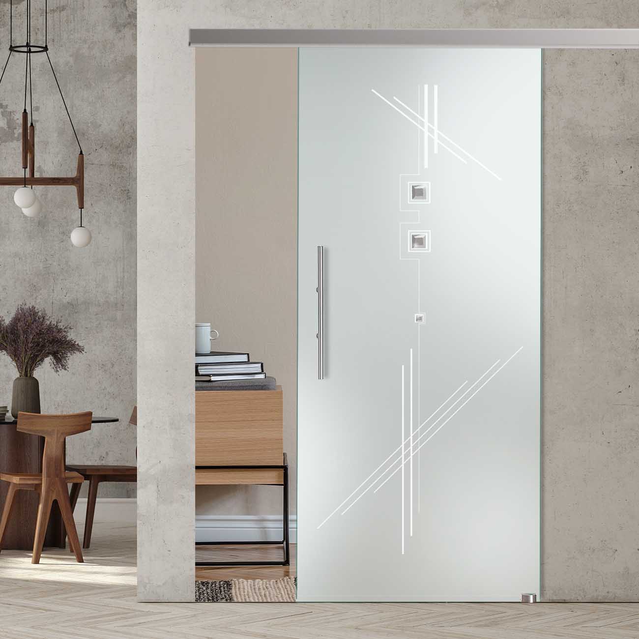 Produktinformationen "Schiebetür mit Sandstrahldekor "215-S" mit Slimline45-Schiebesystem"