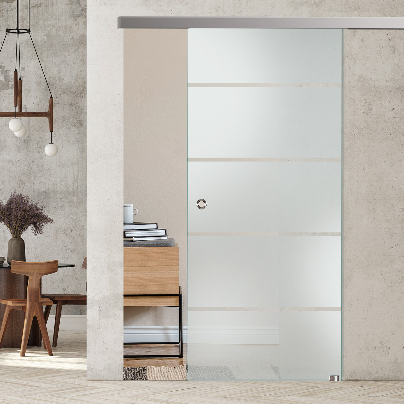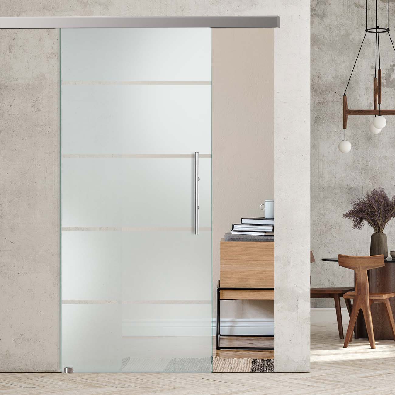 Produktinformationen "Schiebetür mit Sandstrahldekor "254" mit Slimline45-Schiebesystem"