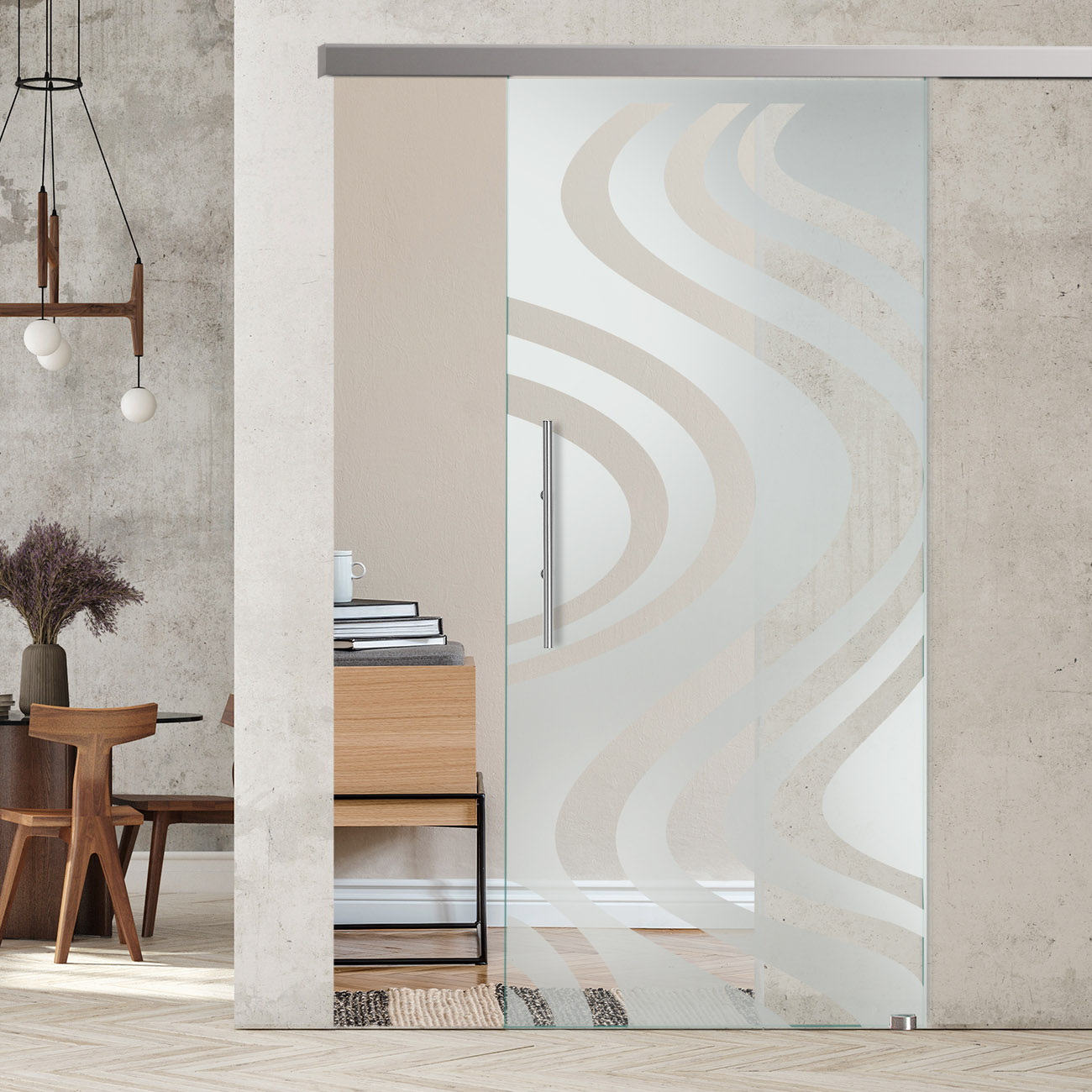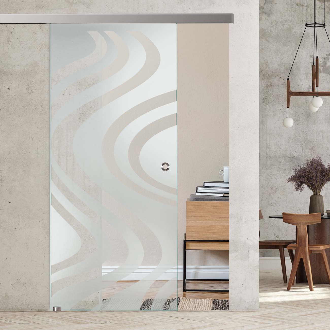 Produktinformationen "Schiebetür mit Sandstrahldekor "258-F" mit Slimline45-Schiebesystem "